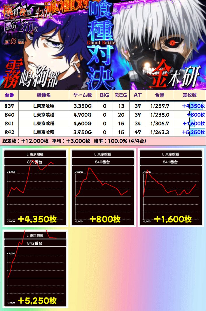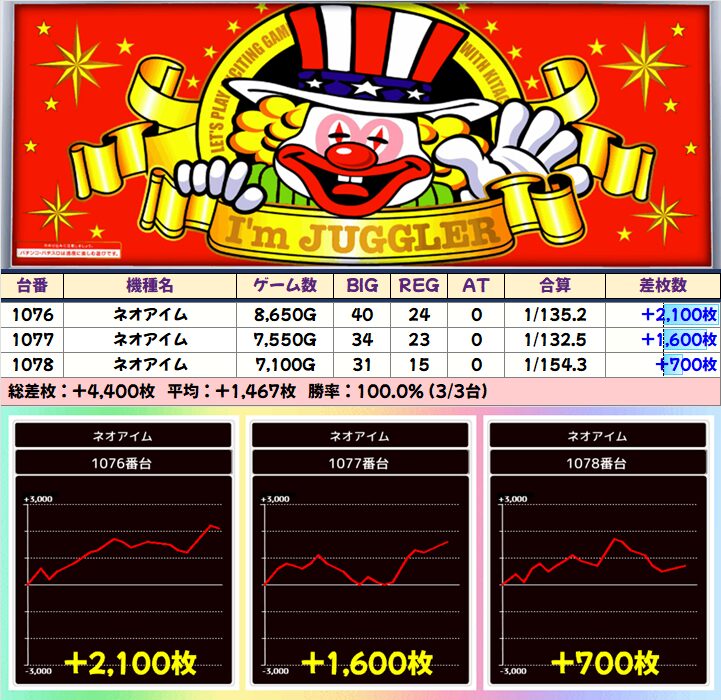 今回も総差枚+15万枚超&平均+200枚超と大量出玉を叩き出していました!