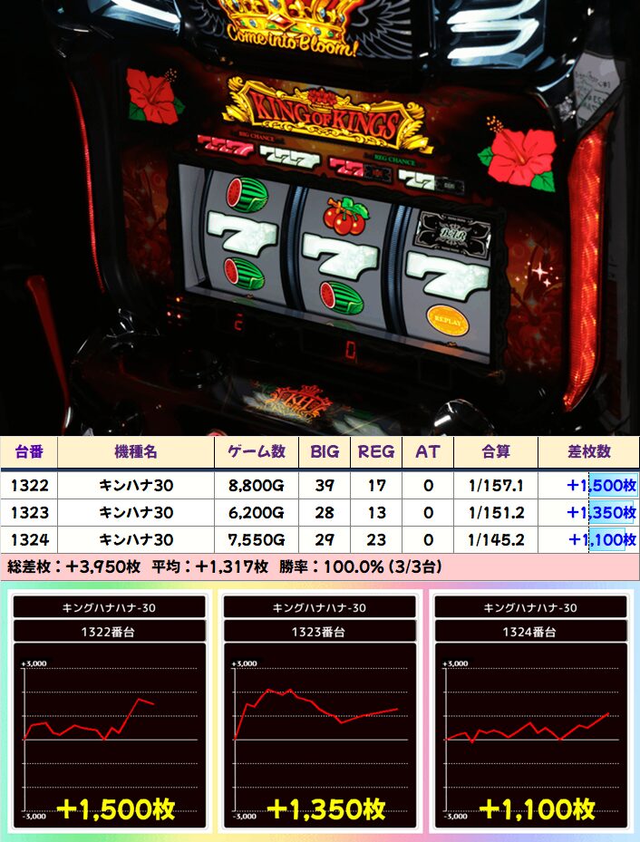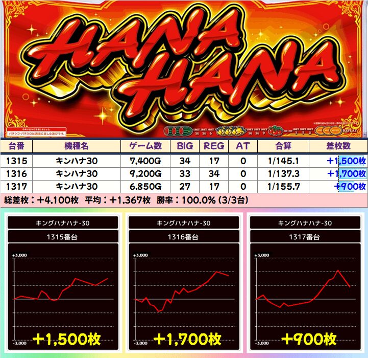 ■キンハナ30(9/16台+)➡平均+325枚