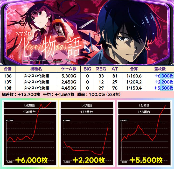 ■スマスロ化物語(7/13台+)➡平均+473枚