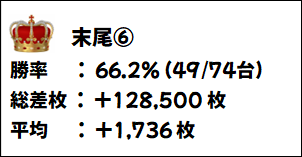 恒例の末尾⑥は平均+1700枚以上と圧巻!
