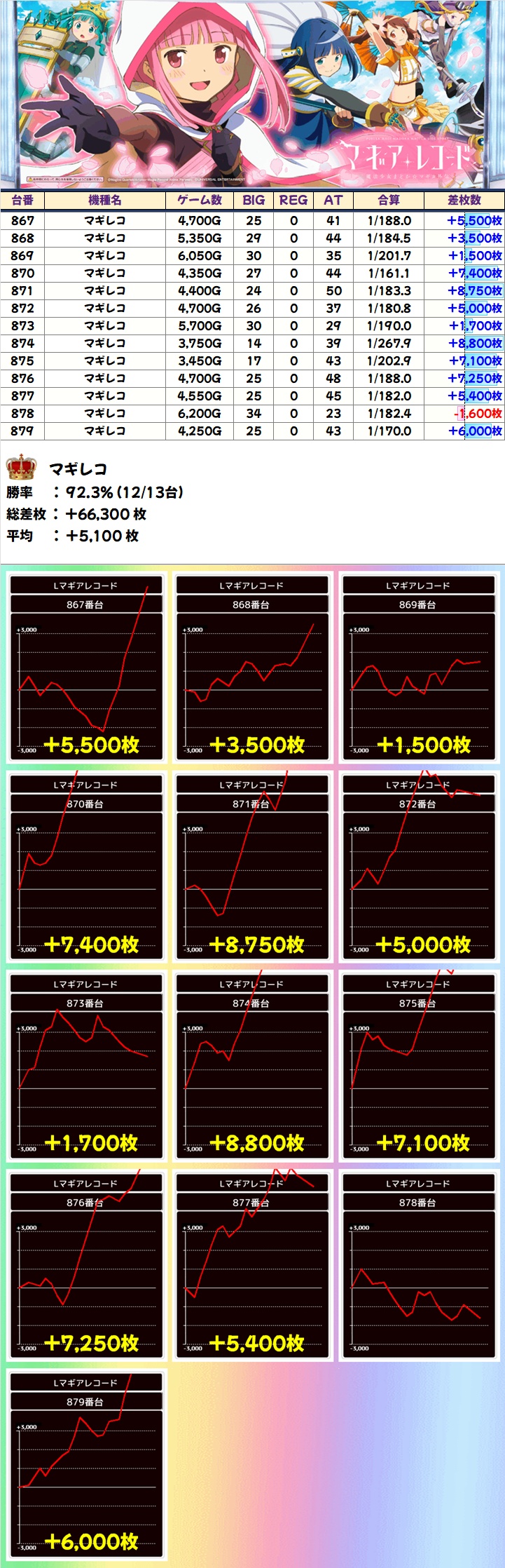 マギレコ(12/13台+)➡平均+5,100枚