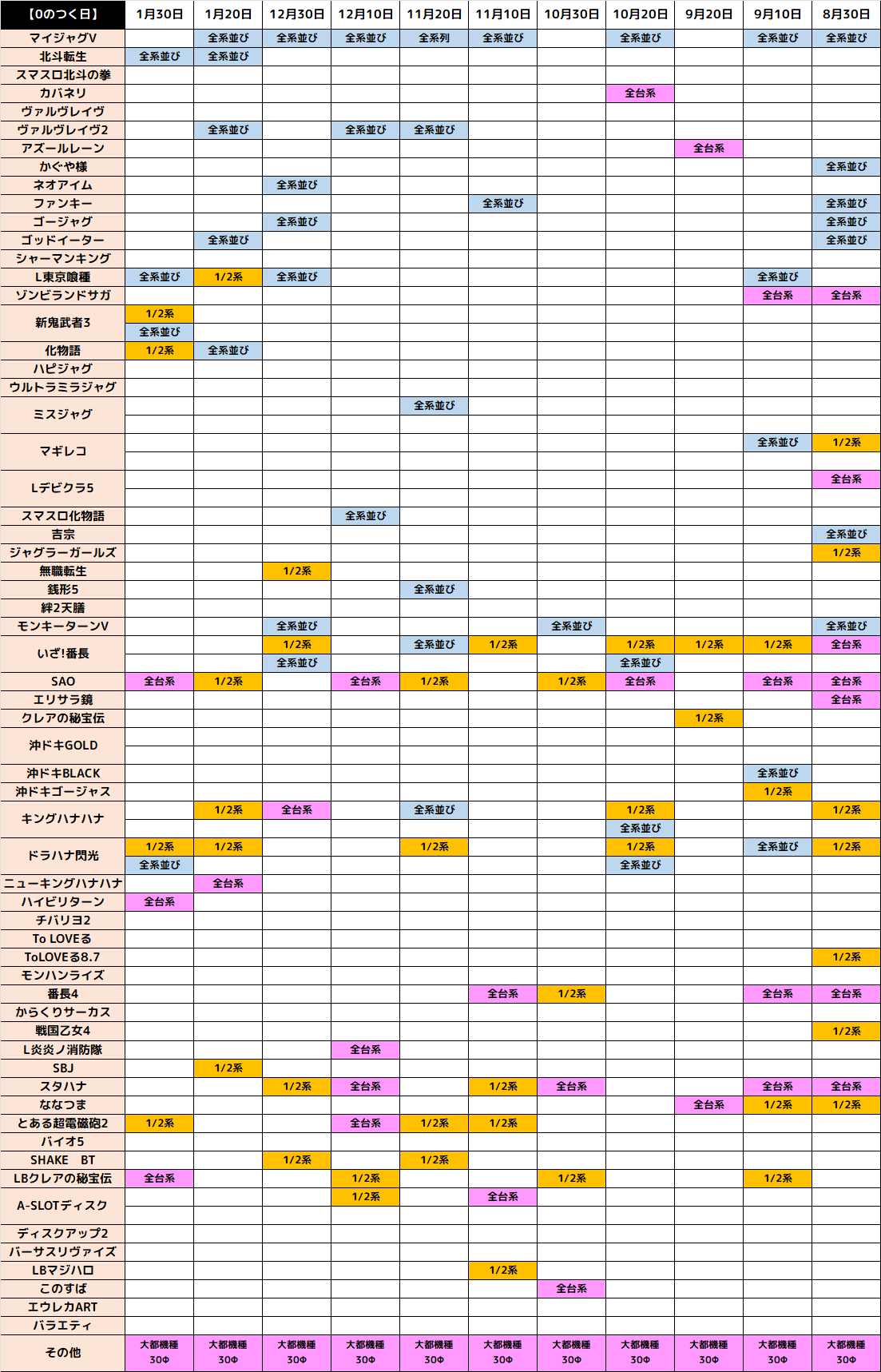 今回は下記の機種から1/2系濃厚の仕掛けを確認できました。
