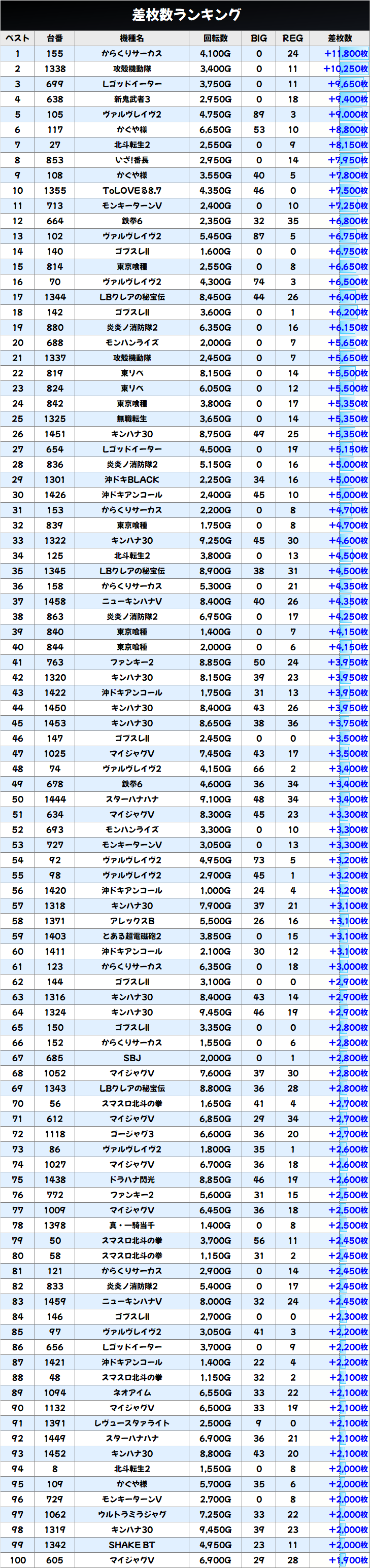 各機種の優秀台をピックアップしますので、データを確認してみましょう!