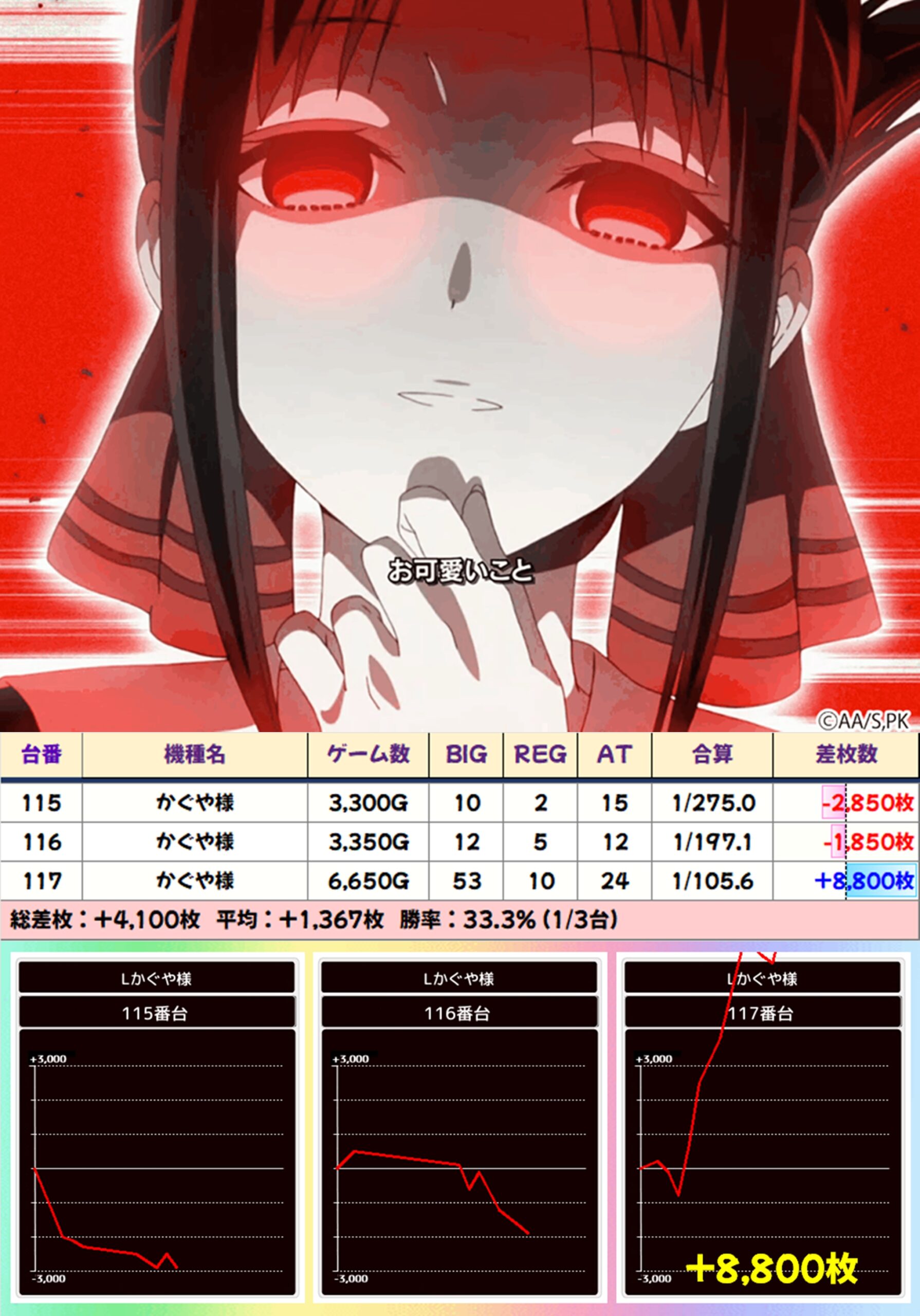 【3台並び】かぐや様(115-117番台)→平均+1,367枚