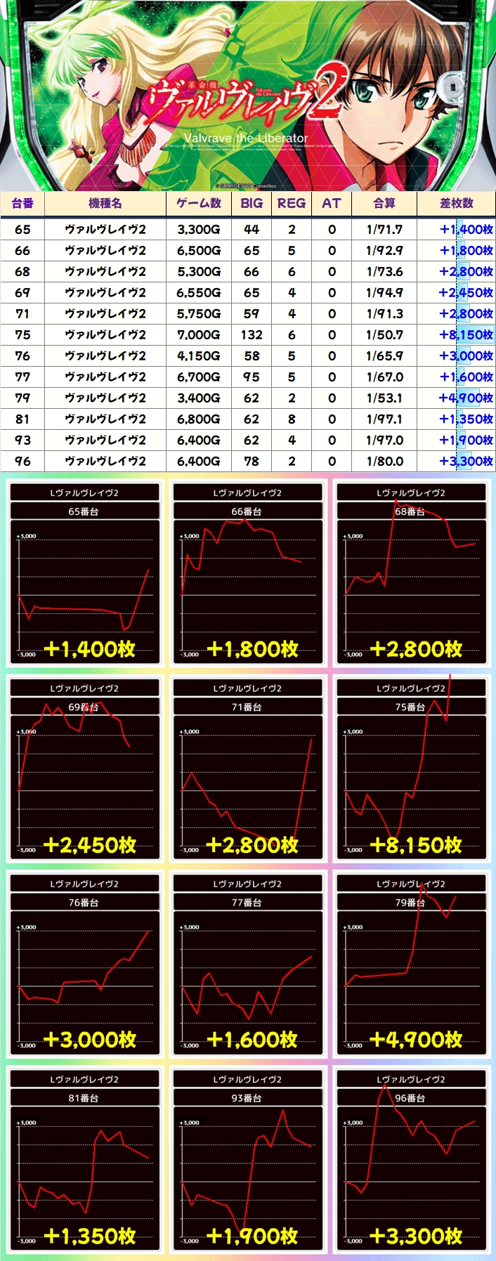 【3台並び】ヴァルヴレイヴ2(67〜69番台)→平均+917枚(2/3台+)