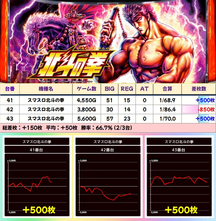 【3台並び】スマスロ北斗の拳(41〜43番台)→平均+50枚(2/3台+)