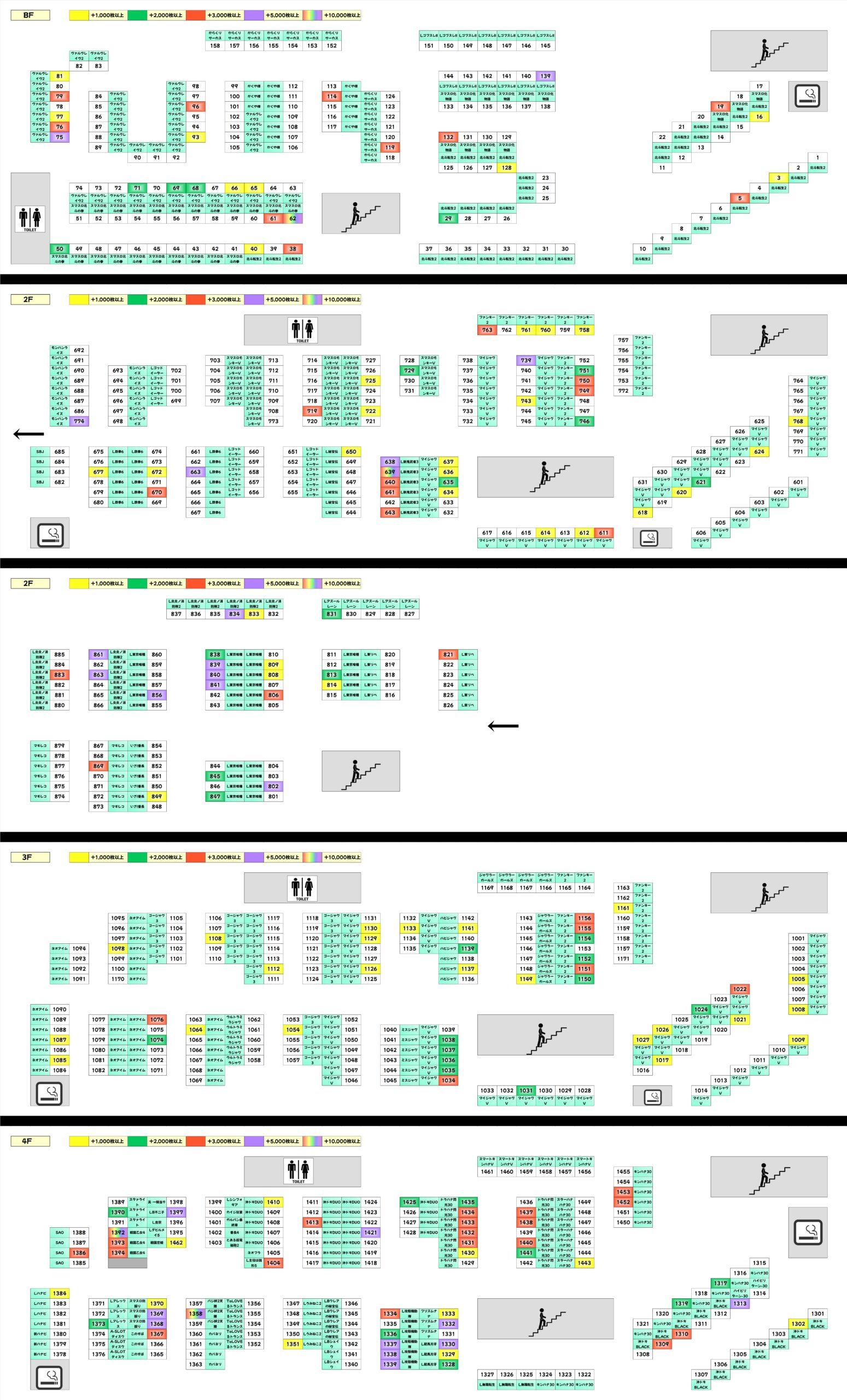 ③台並びは全フロアから確認でき、最多設置のマイジャグからは3台並びを7箇所確認することができました。