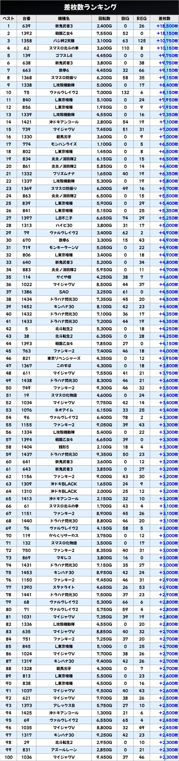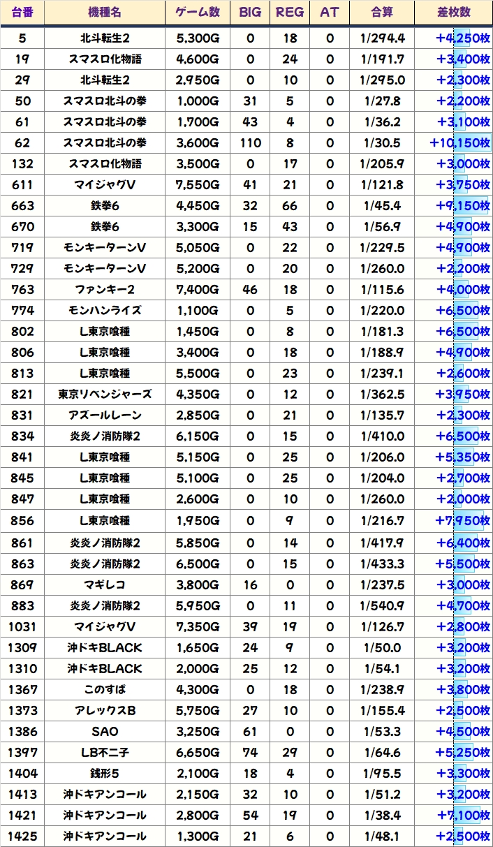 今回も優秀台(+1000枚超)をピックアップしましたので見ていきましょう!