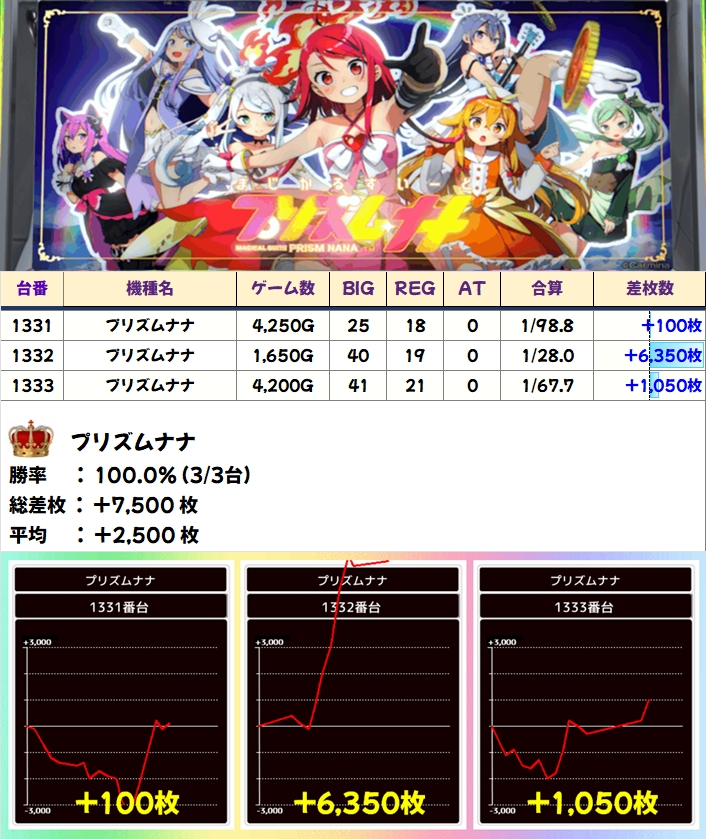 【全台系濃厚】プリズムナナ(3/3台+)→平均+2,500枚