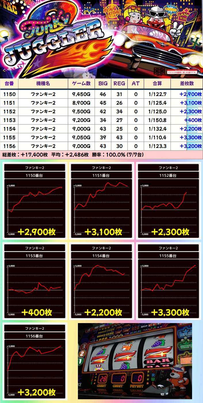 【列仕掛け】ファンキー2(1150〜1156番台)→平均+2,486枚(7/7台+)