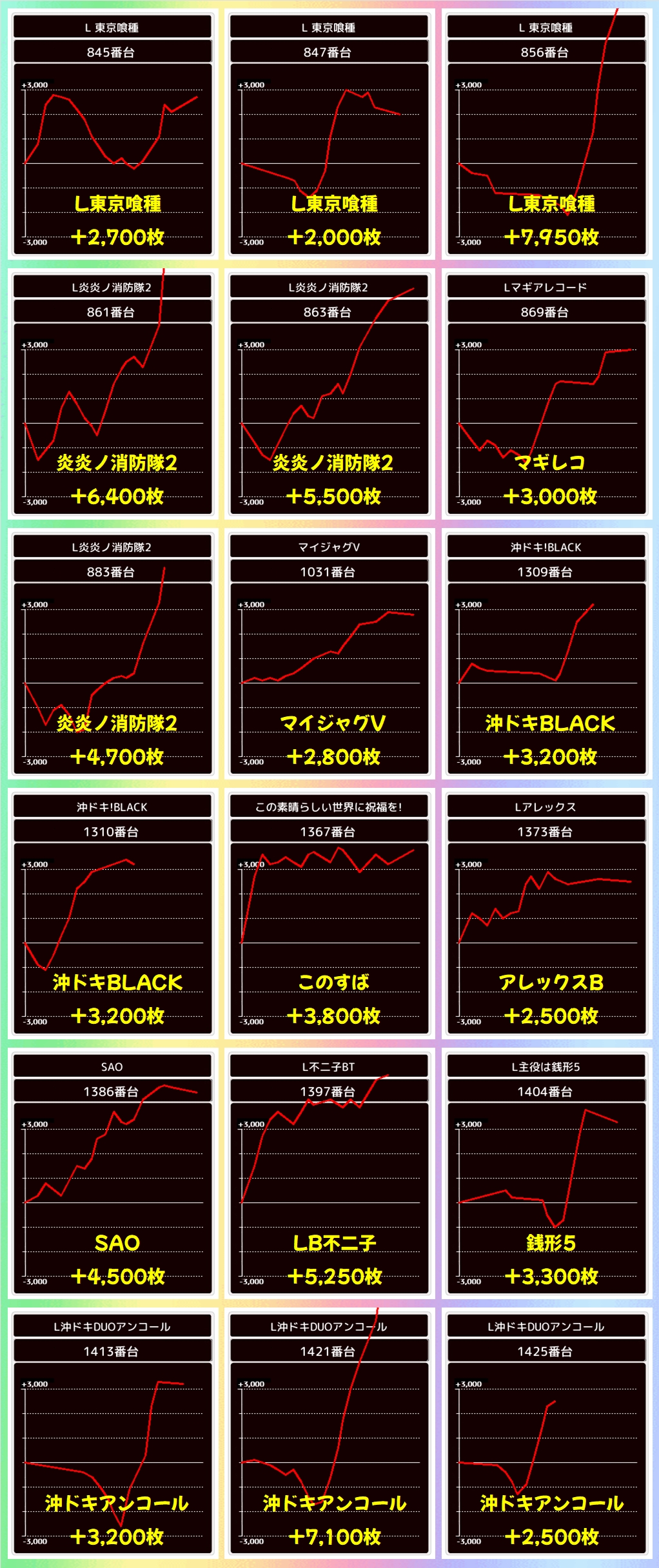 先ほども触れた通り、この日はかぶぱポストからヒントを確認できた機種がいずれも全台系と思しき結果になっており、計9機種が全台系濃厚に!