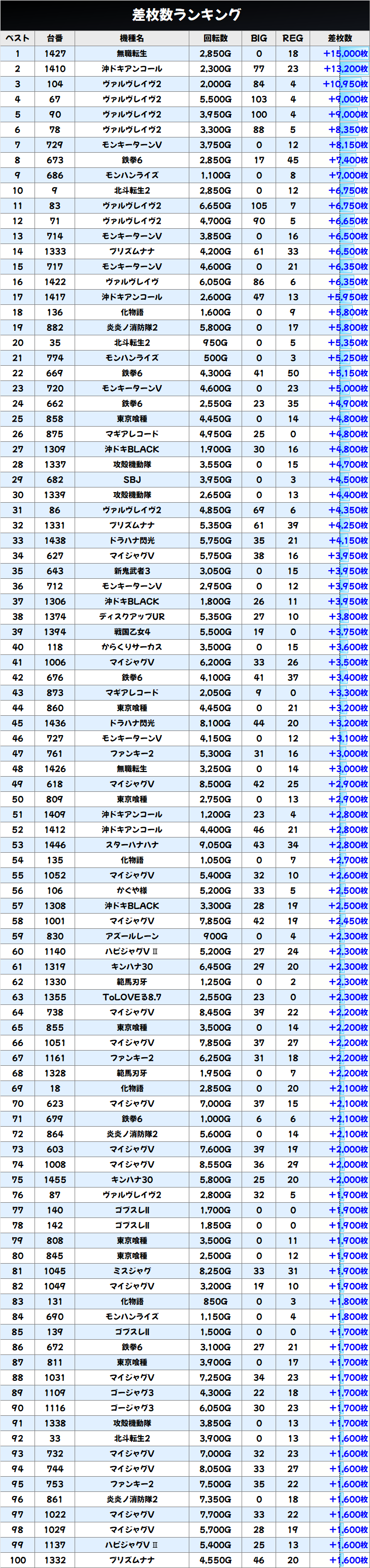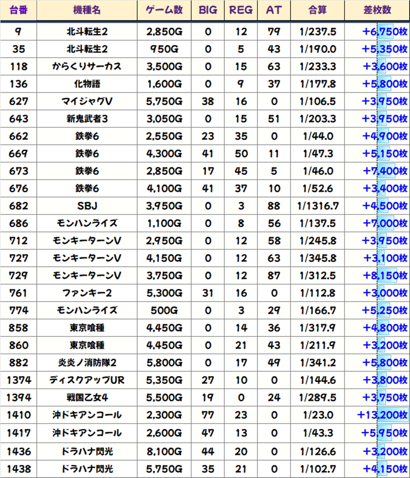 各機種の優秀台をピックアップしますので、データを確認してみましょう!