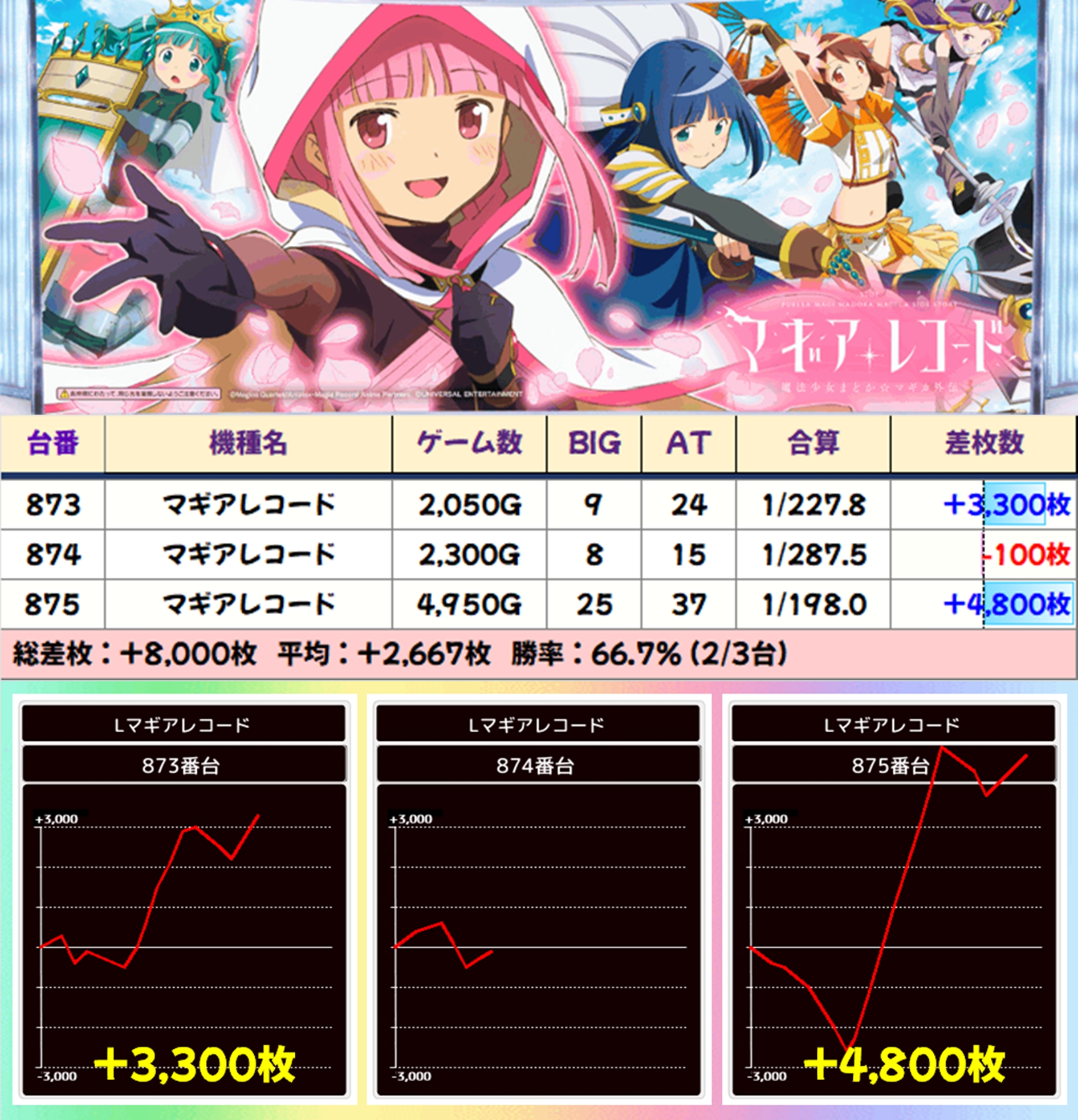 【3台並び】マギアレコード(873-875番台)→平均+2,667枚