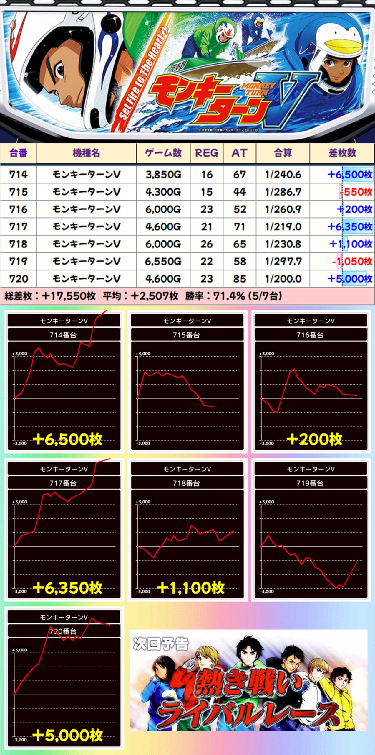 【列全】モンキーターンV(714-720番台)→平均+2,507枚