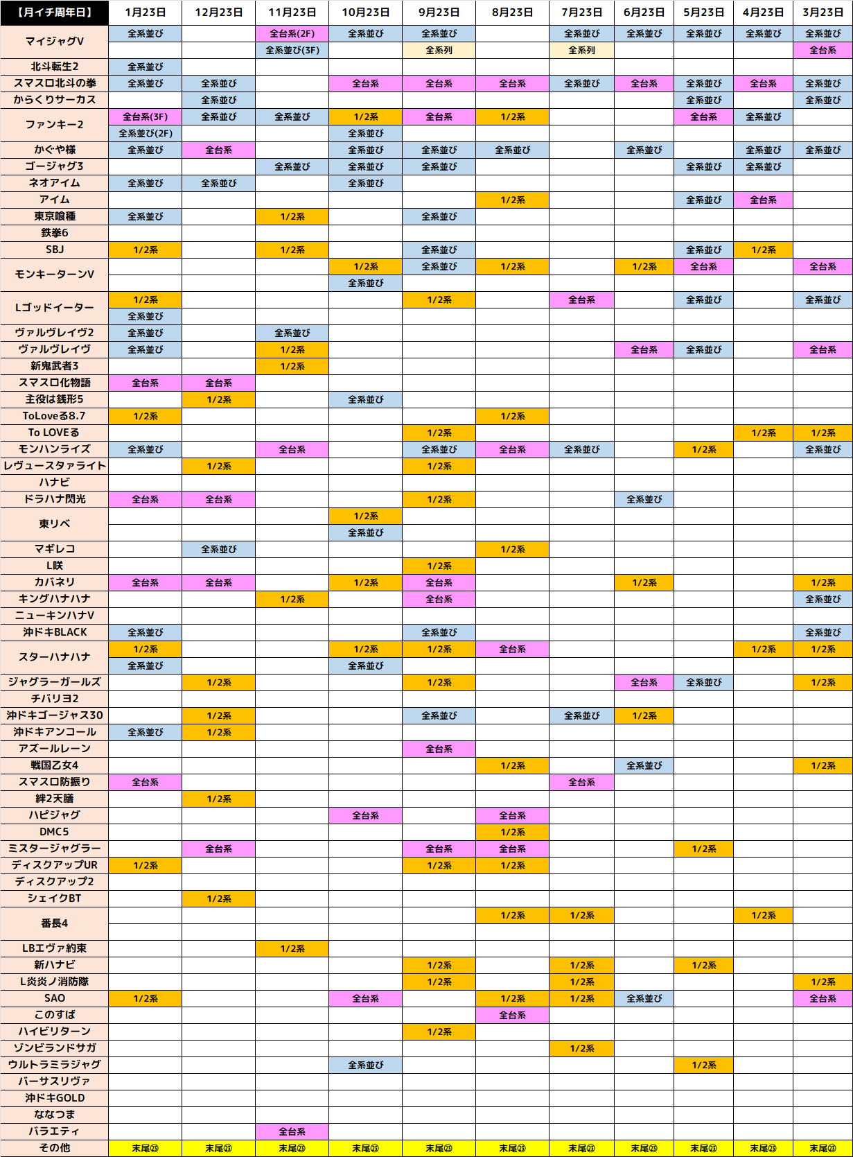 優秀台が多数出現する月イチ周年日!