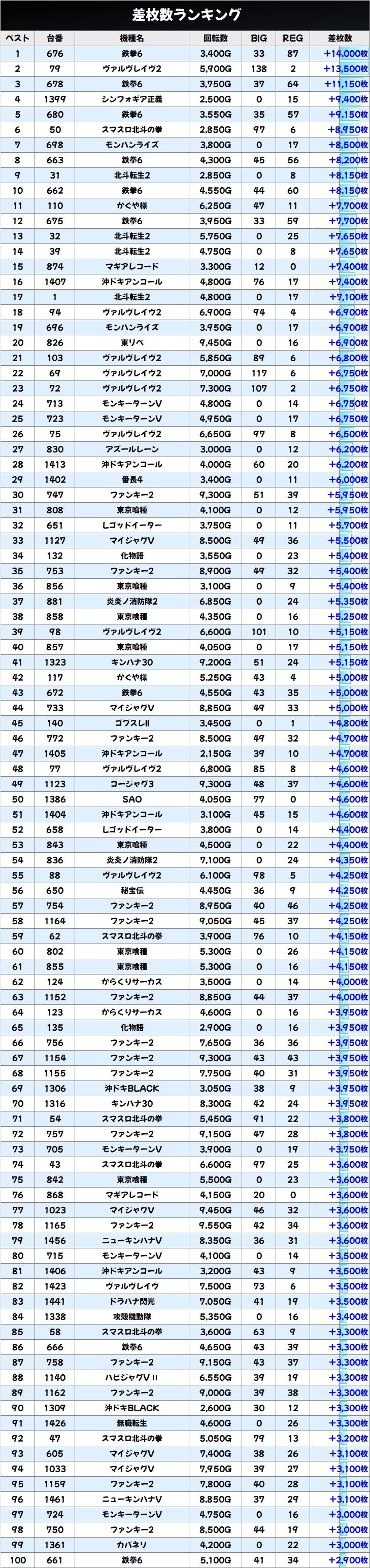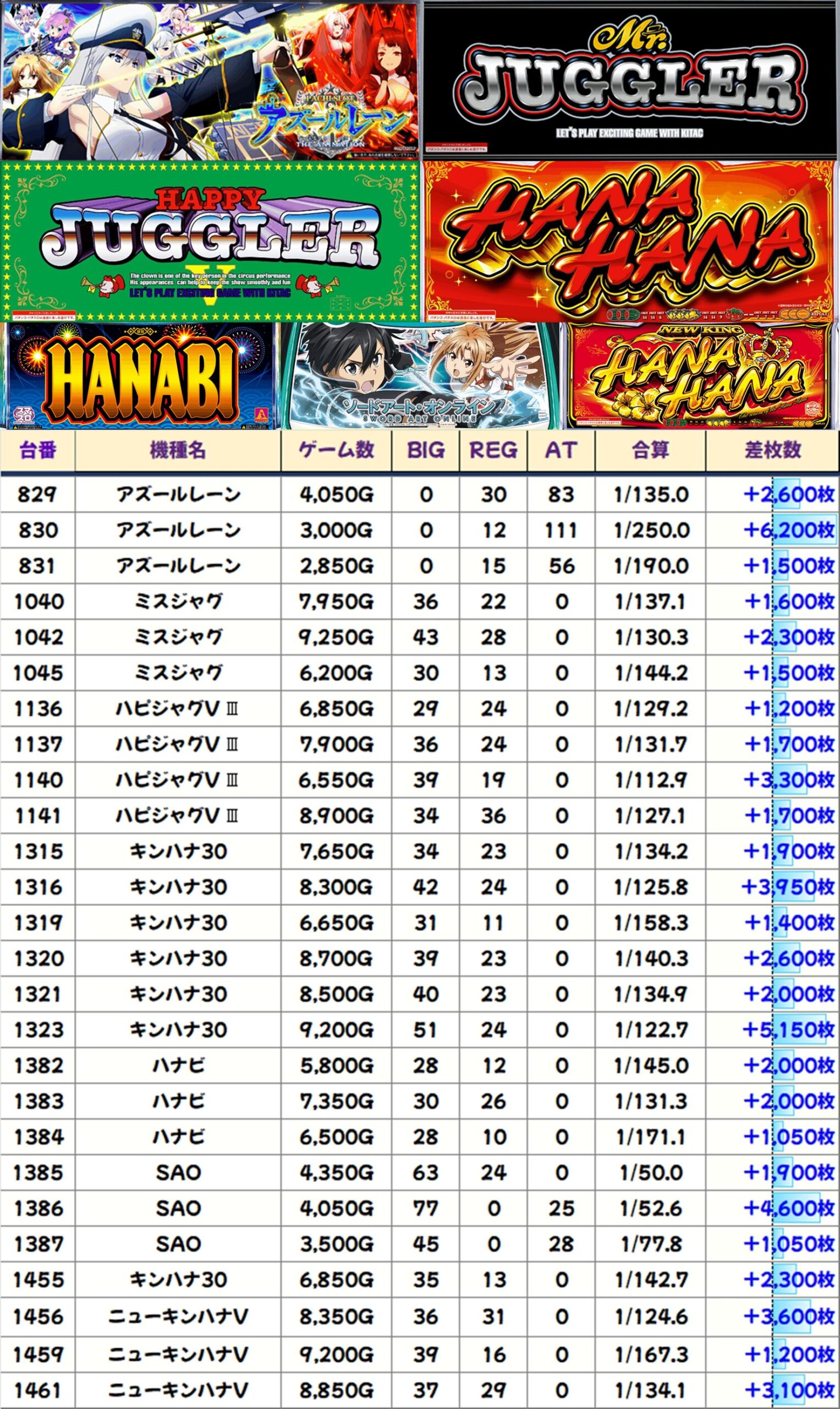 優秀台(+1000枚超)をピックアップしていきますので確認していきましょう!