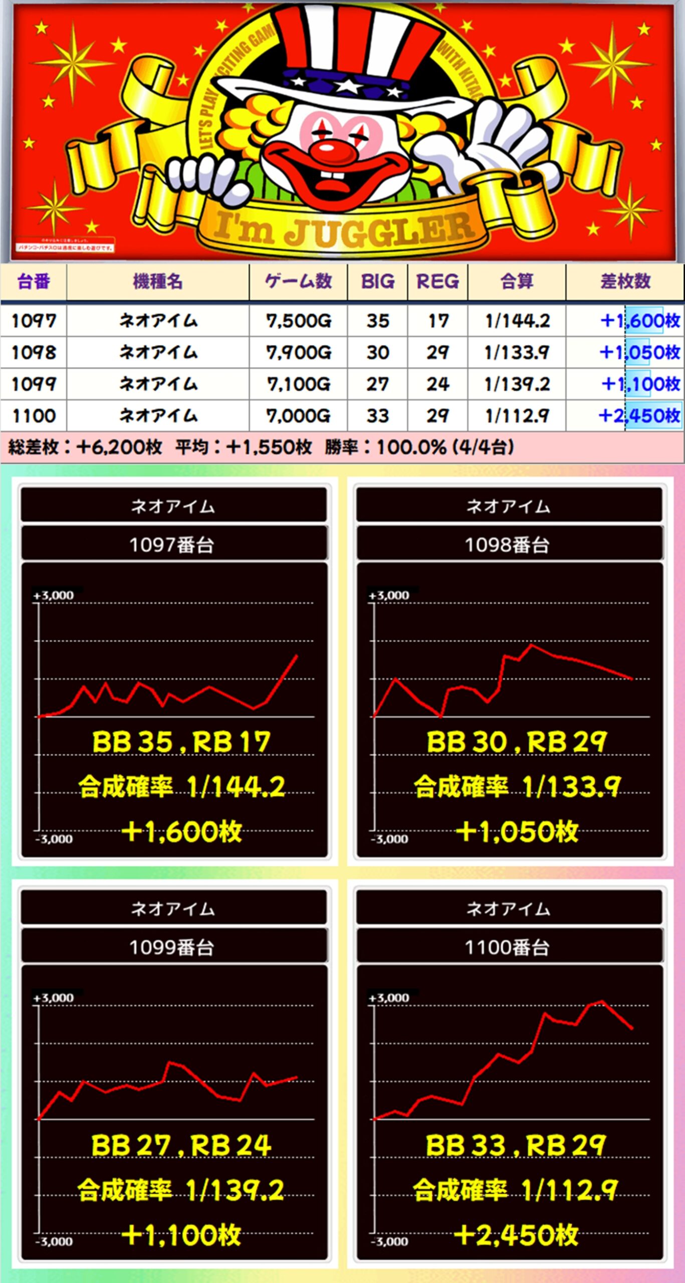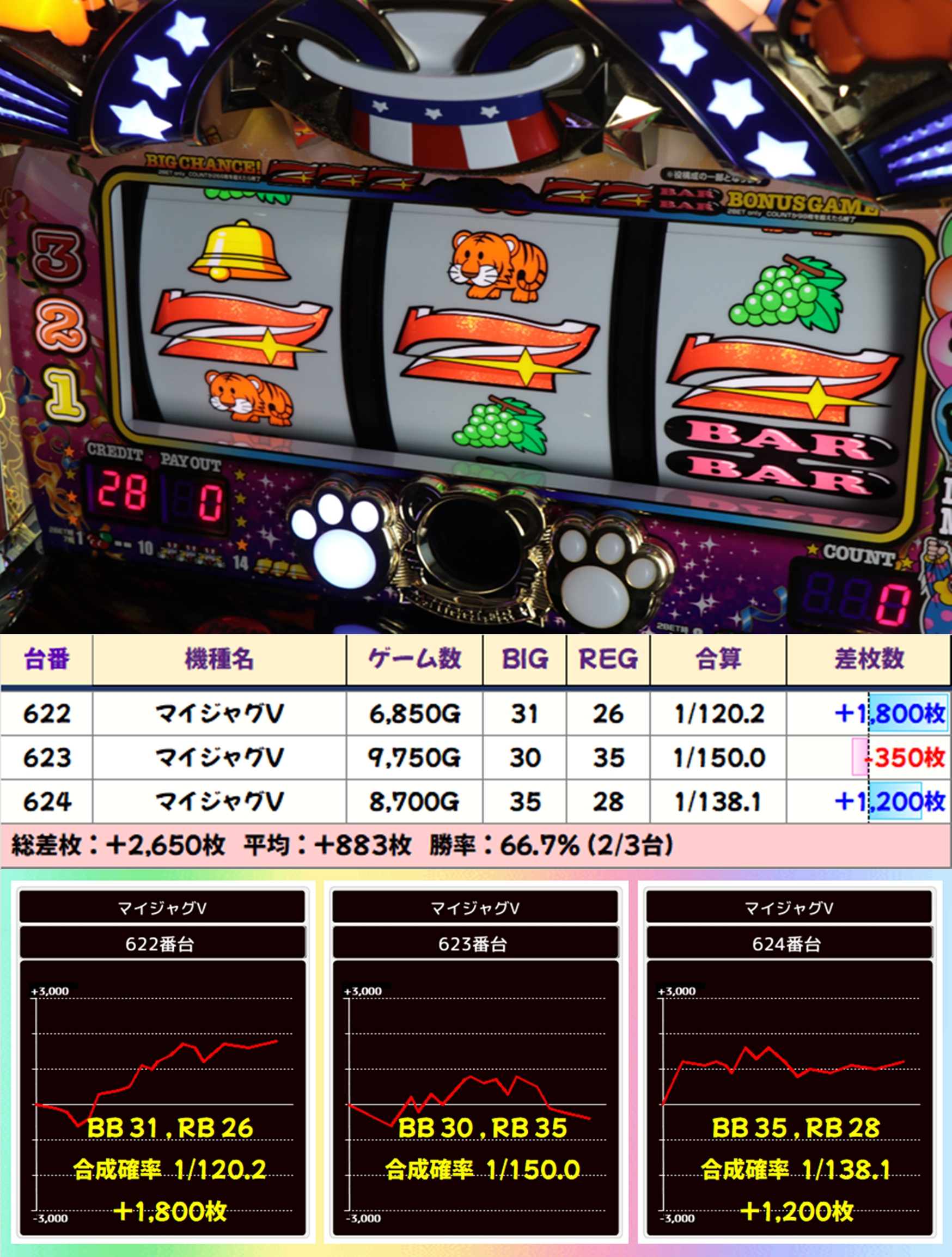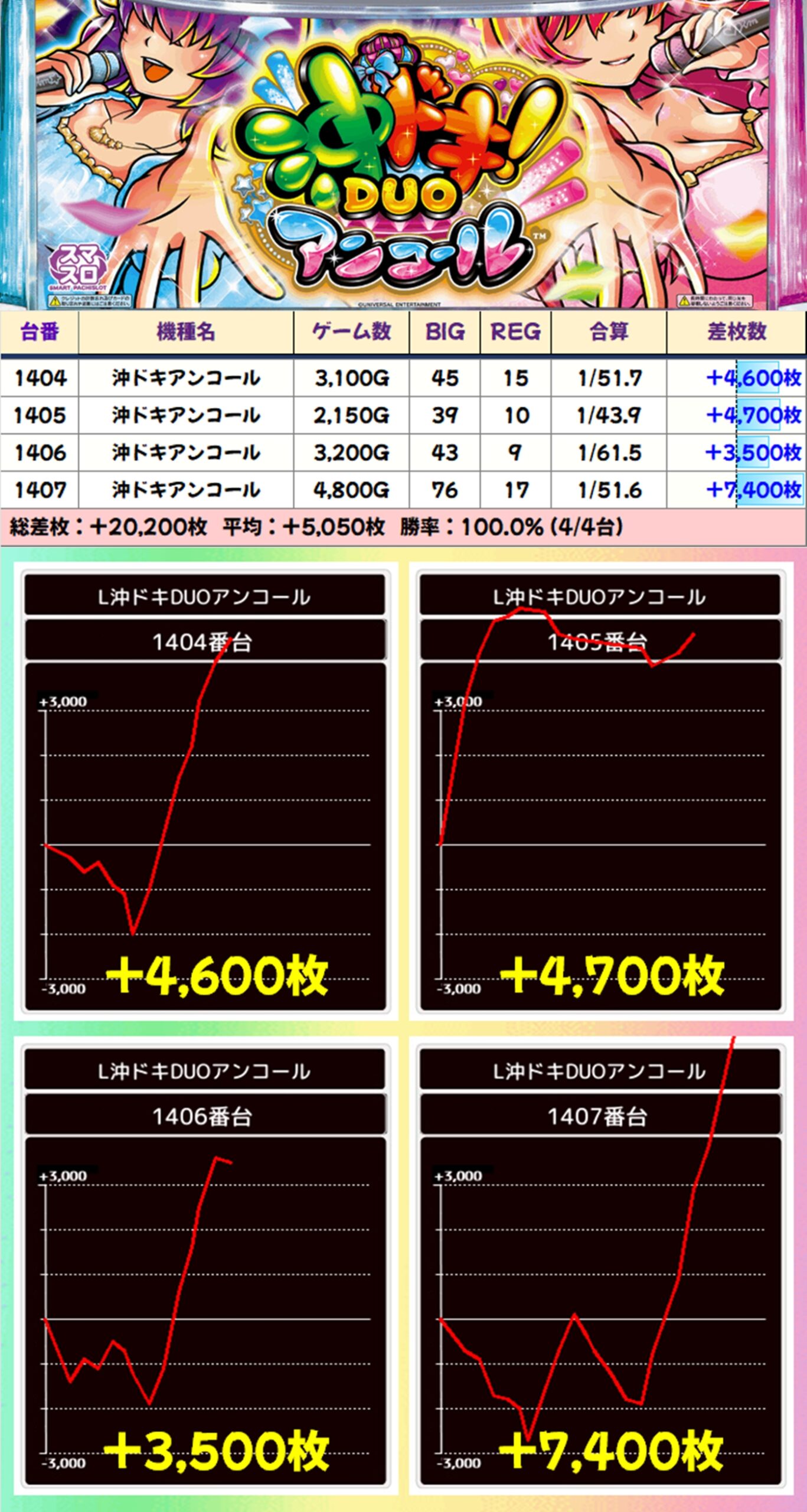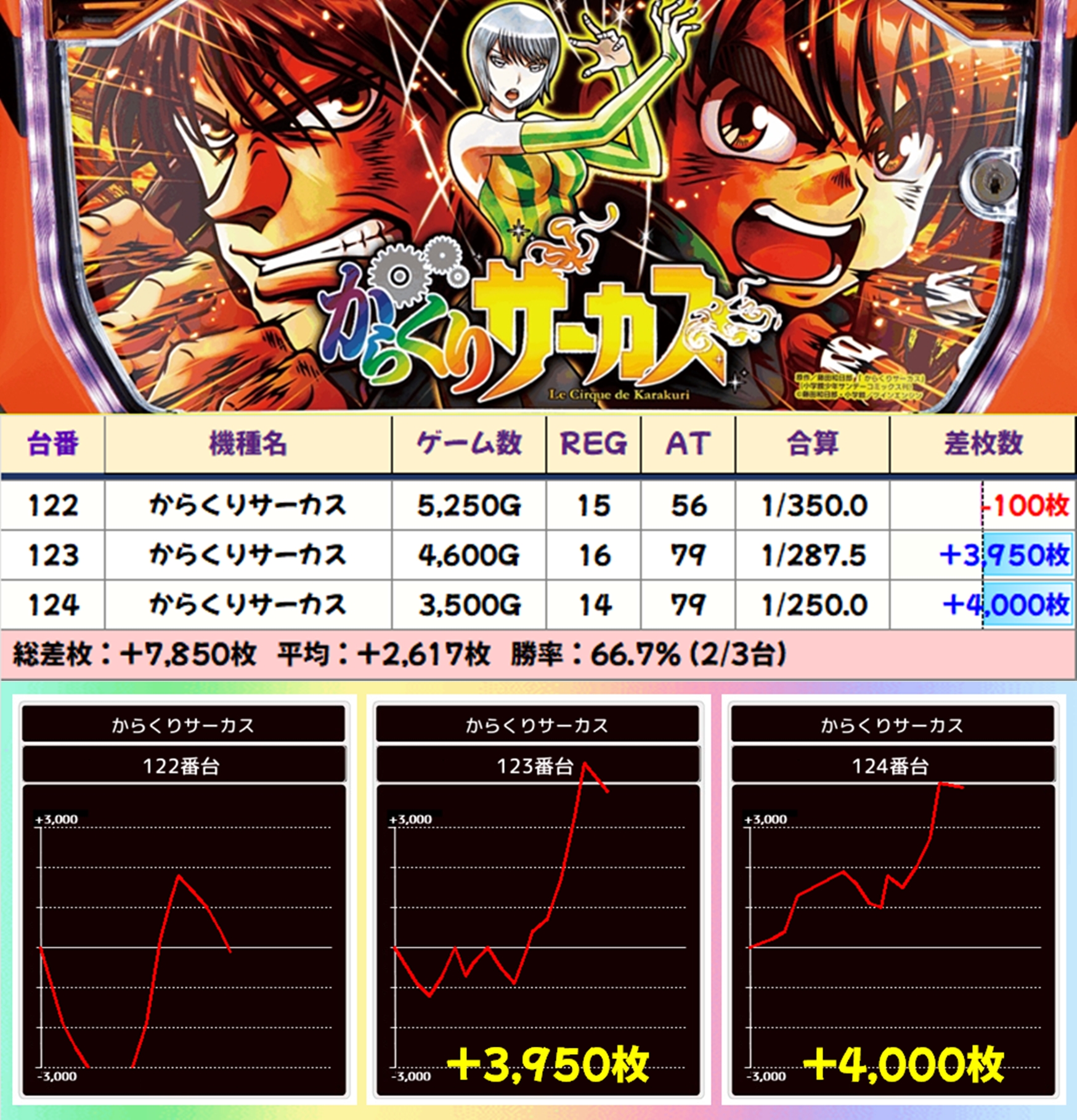 トータルでは平均+2,426枚の優秀な結果を残しました!