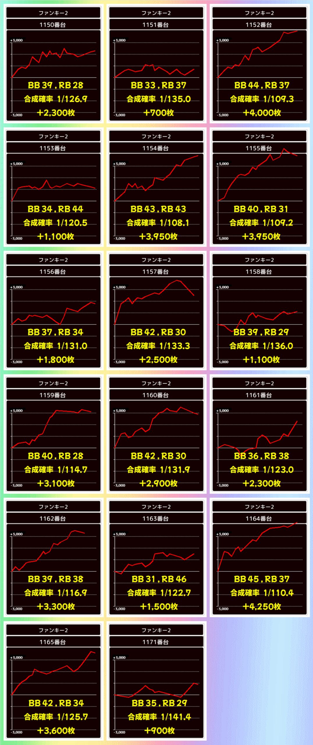 📝3Fファンキー2 平均+2,538枚(17/17台)