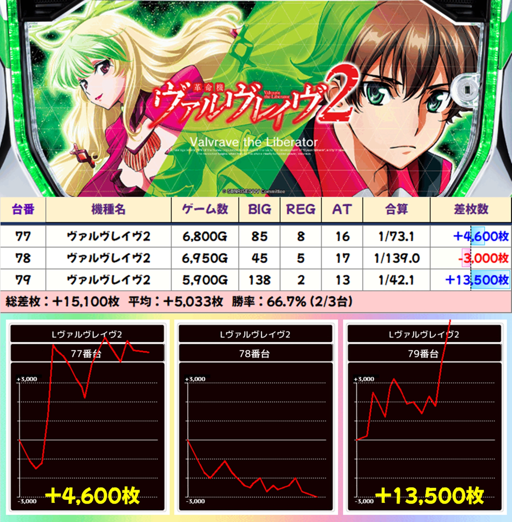 【3台並び】ヴァルヴレイヴ2(77-79番台)→平均+5,033枚