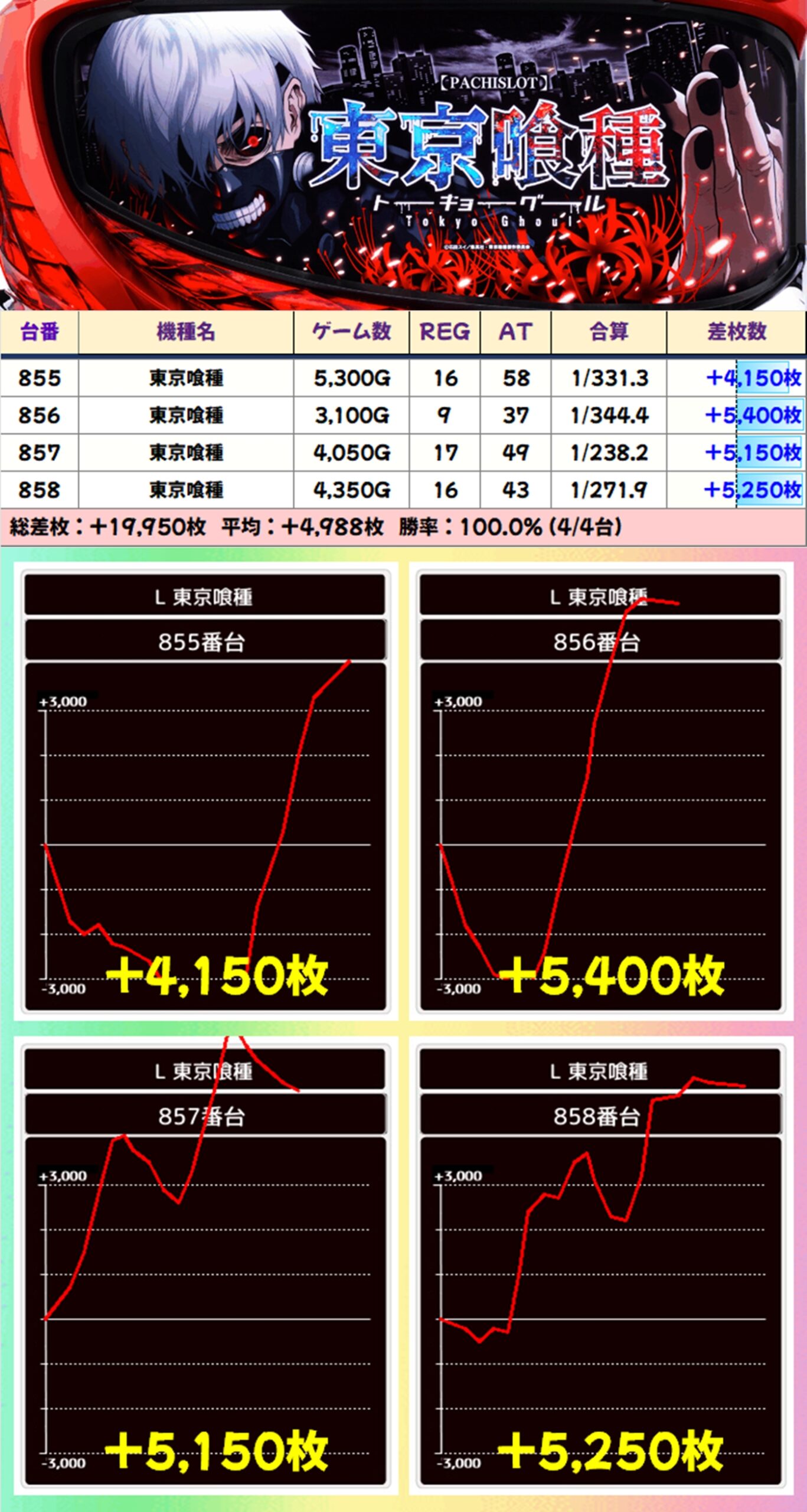 【4台並び】東京喰種(855-858番台)→平均+4,988枚