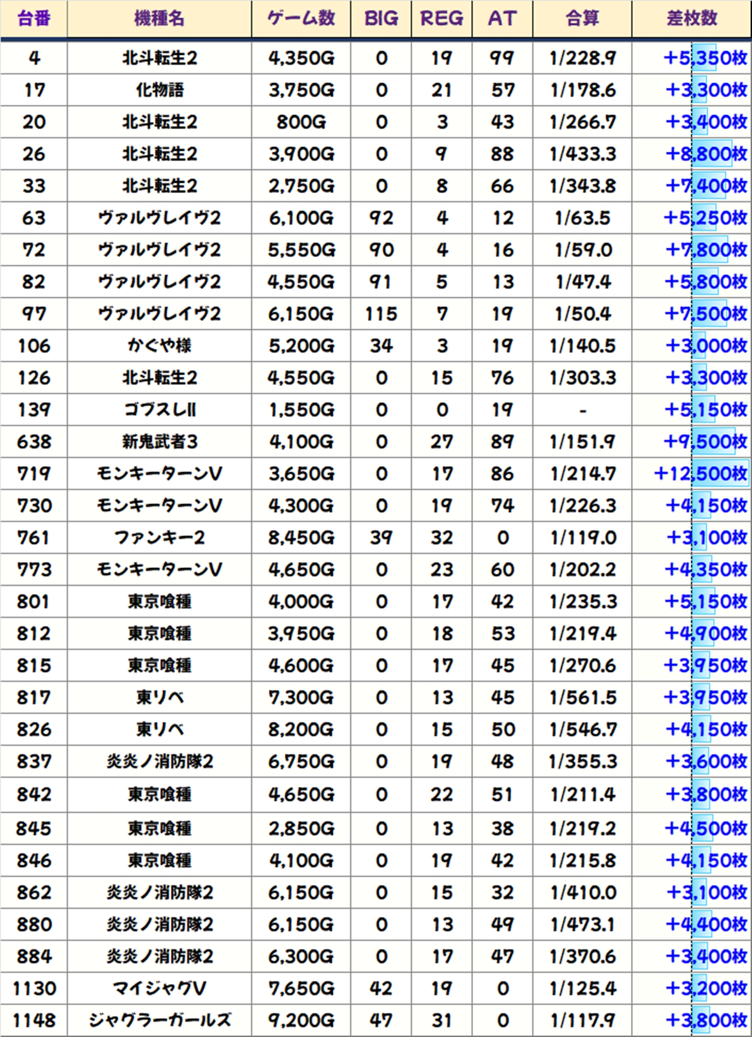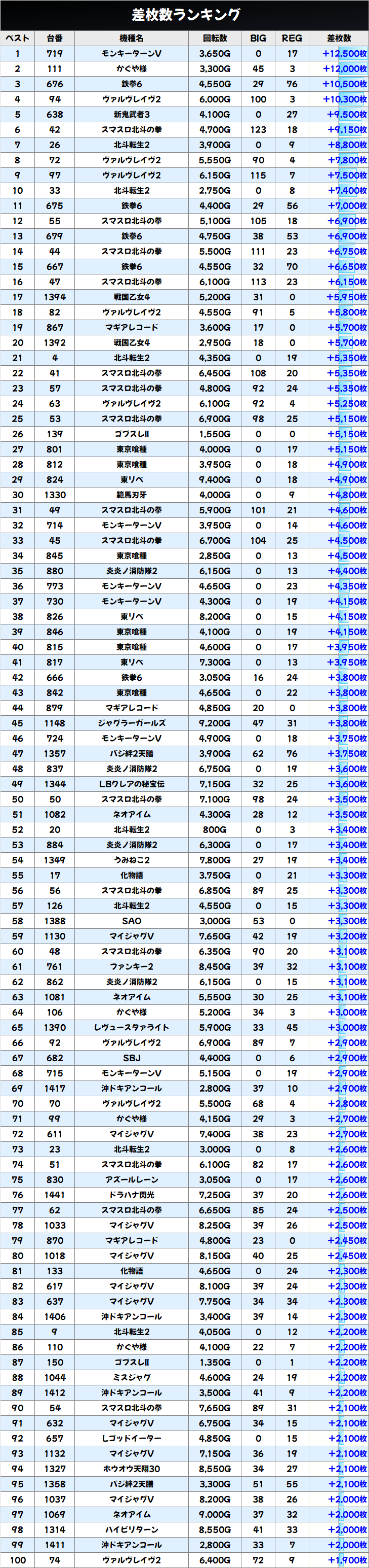 優秀台(+1000枚超)をピックアップしていきますので確認していきましょう!