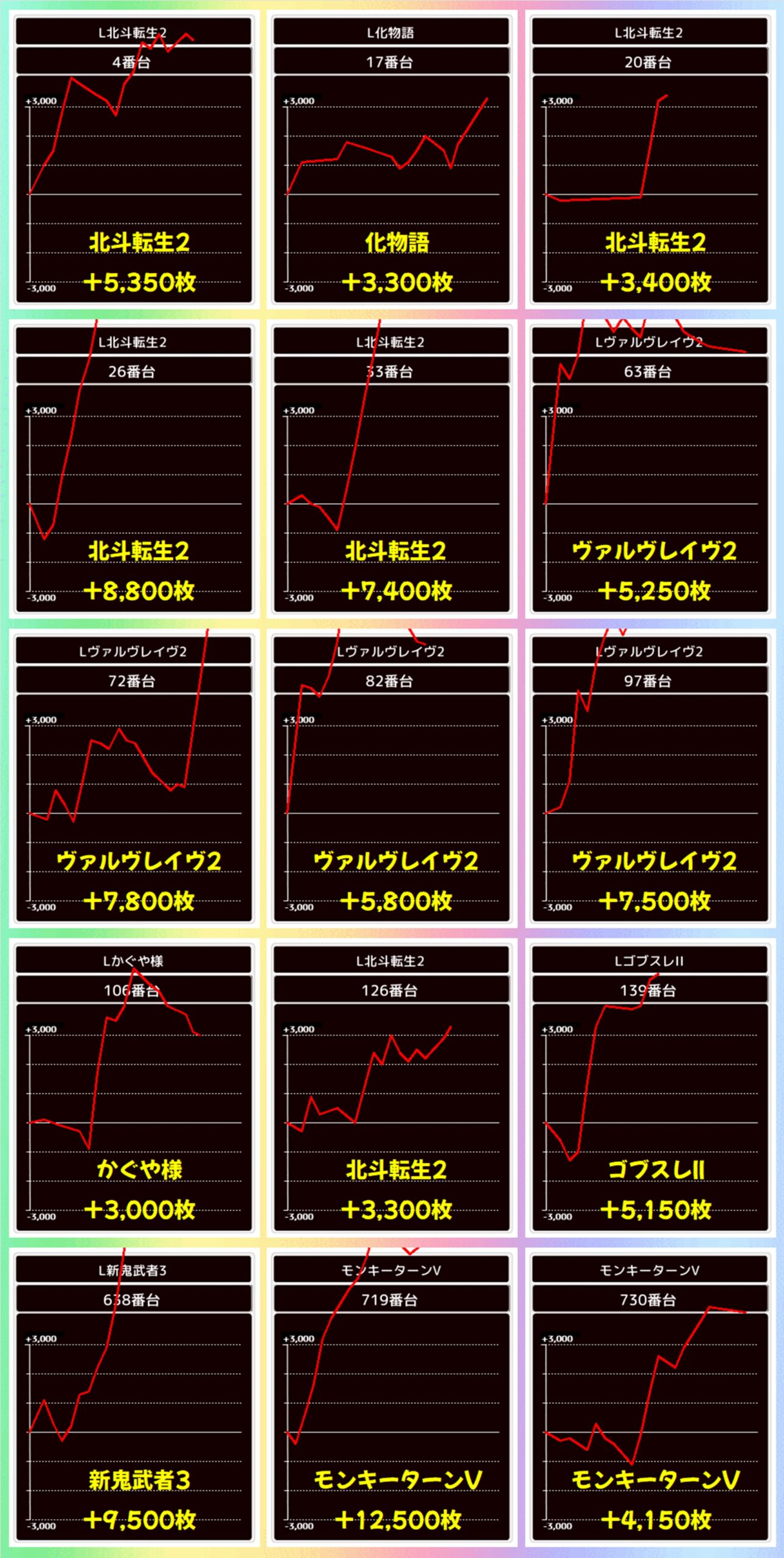 +9150枚を筆頭に+5000枚を超える大量出玉を多数確認することができました!