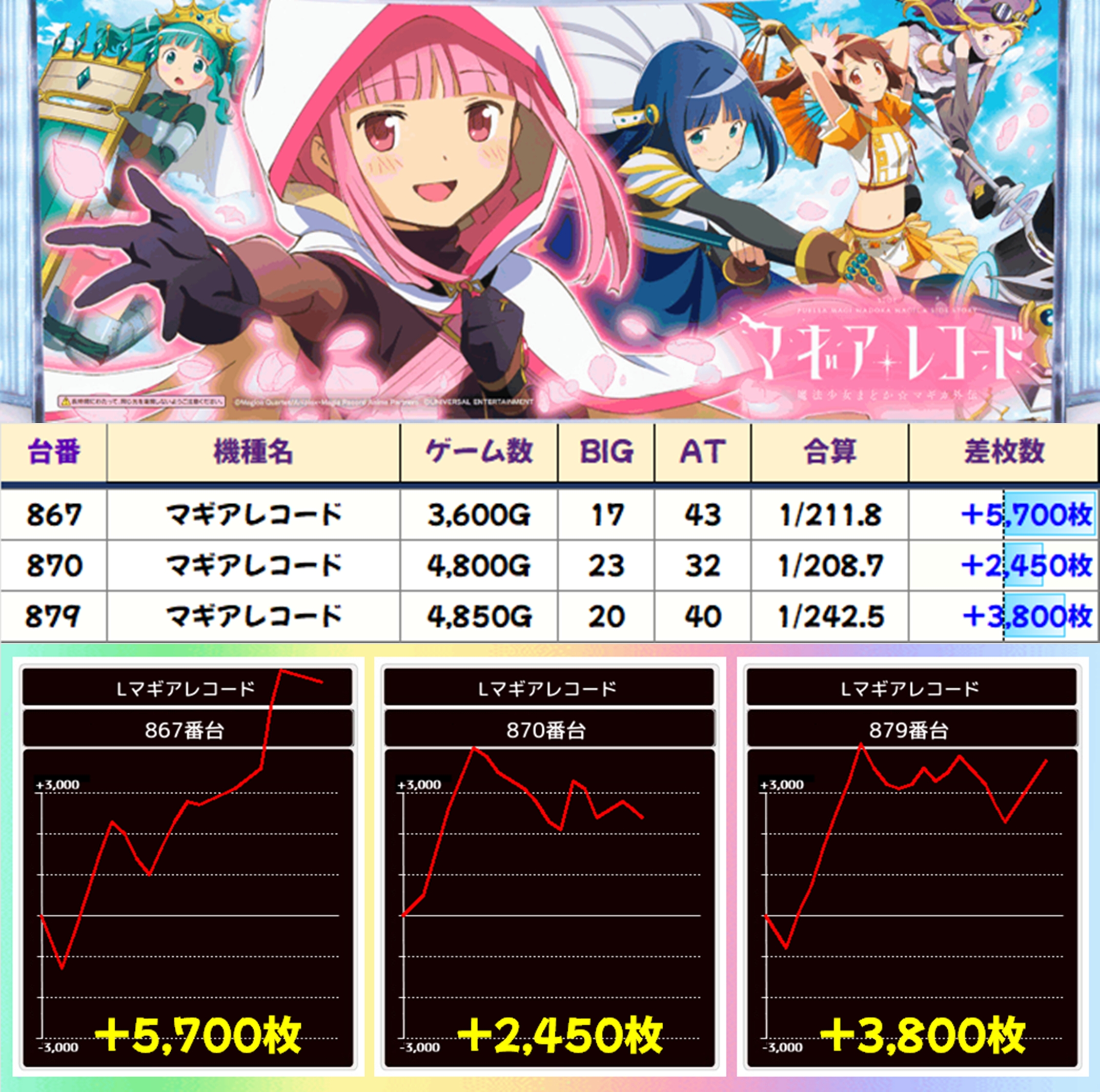 マギアレコードからは+5700枚や+3800枚などの出玉アリ!