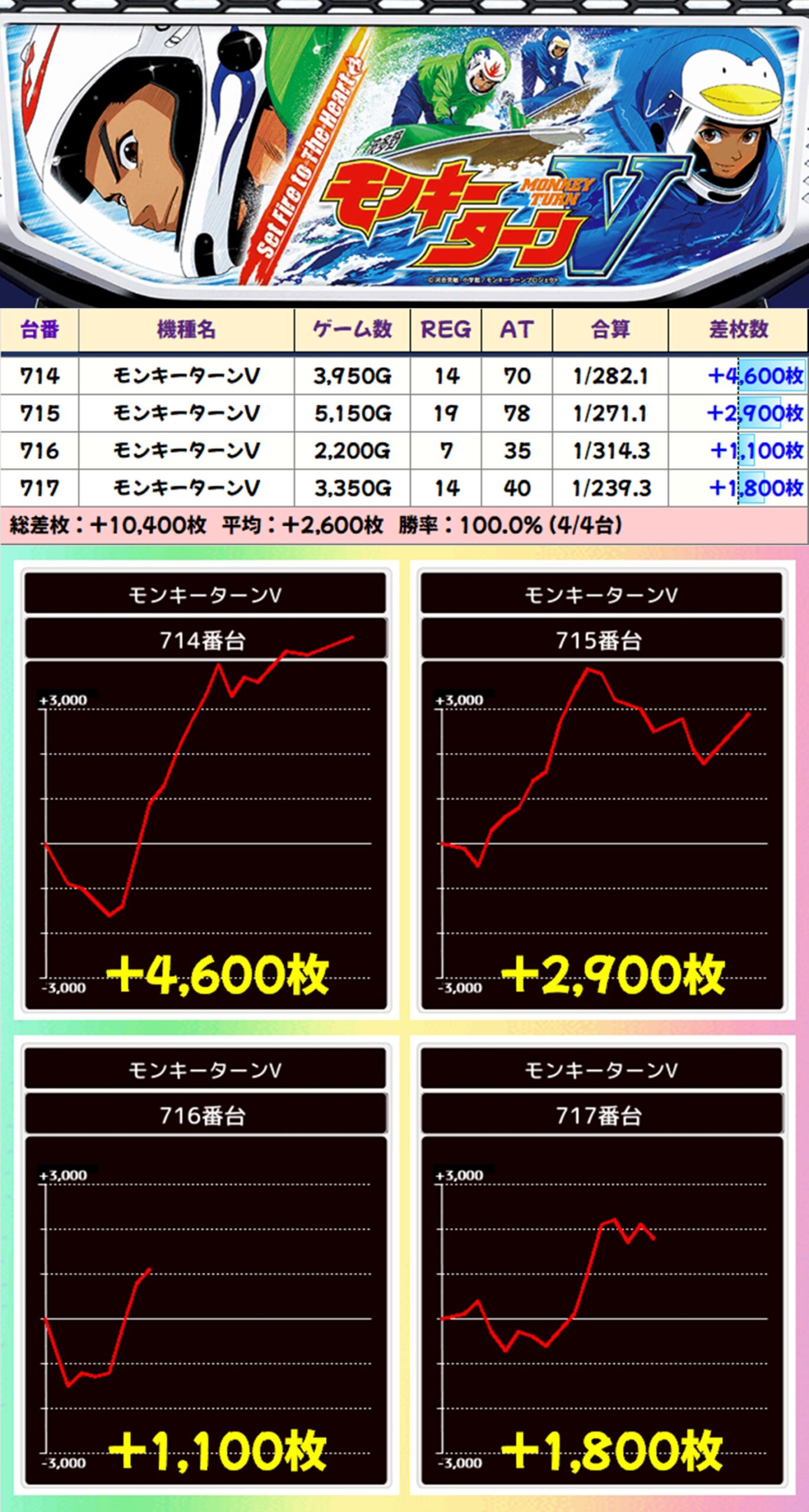 【4台並び】モンキーターンV(714-717番台)→平均+2,600枚