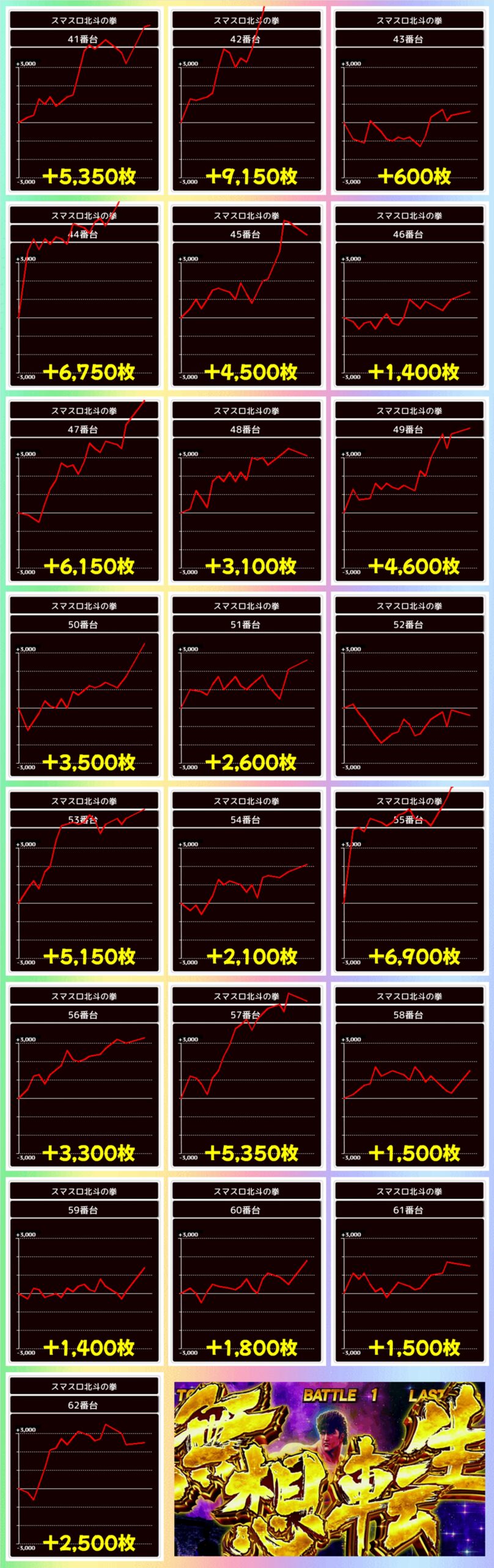 かぶぱポストにトリプルヒントがあり、ポスター機種でもあったスマスロ北斗の拳が全台系濃厚で、勝率も差枚数も優秀な結果となりました。