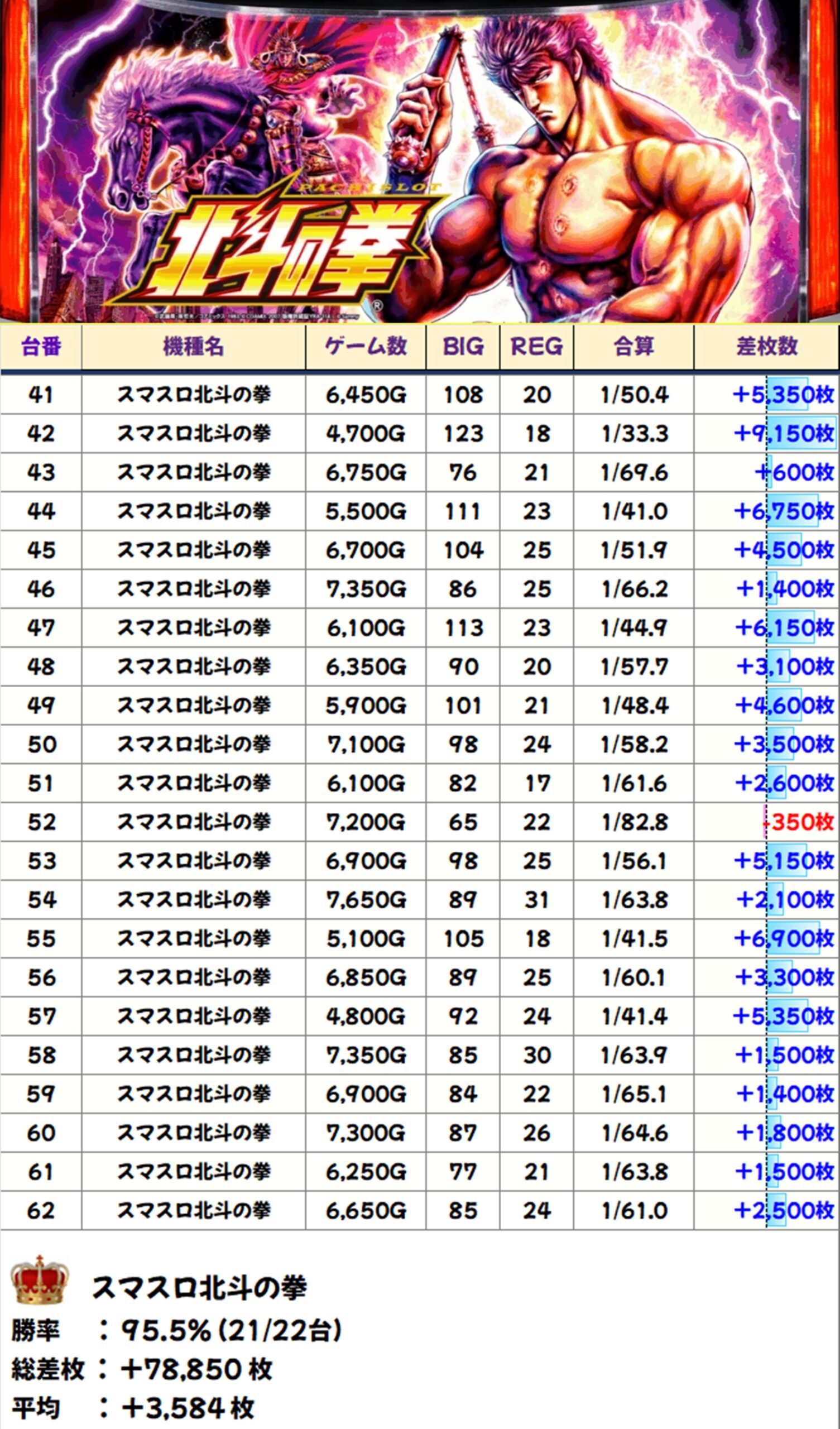 スマスロ北斗の拳(21/22台+)→平均+3,584枚