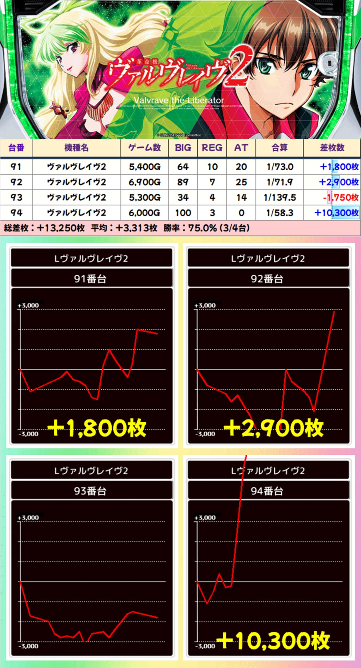 【4台並び】ヴァルヴレイヴ2(91-94番台)→平均+3,313枚