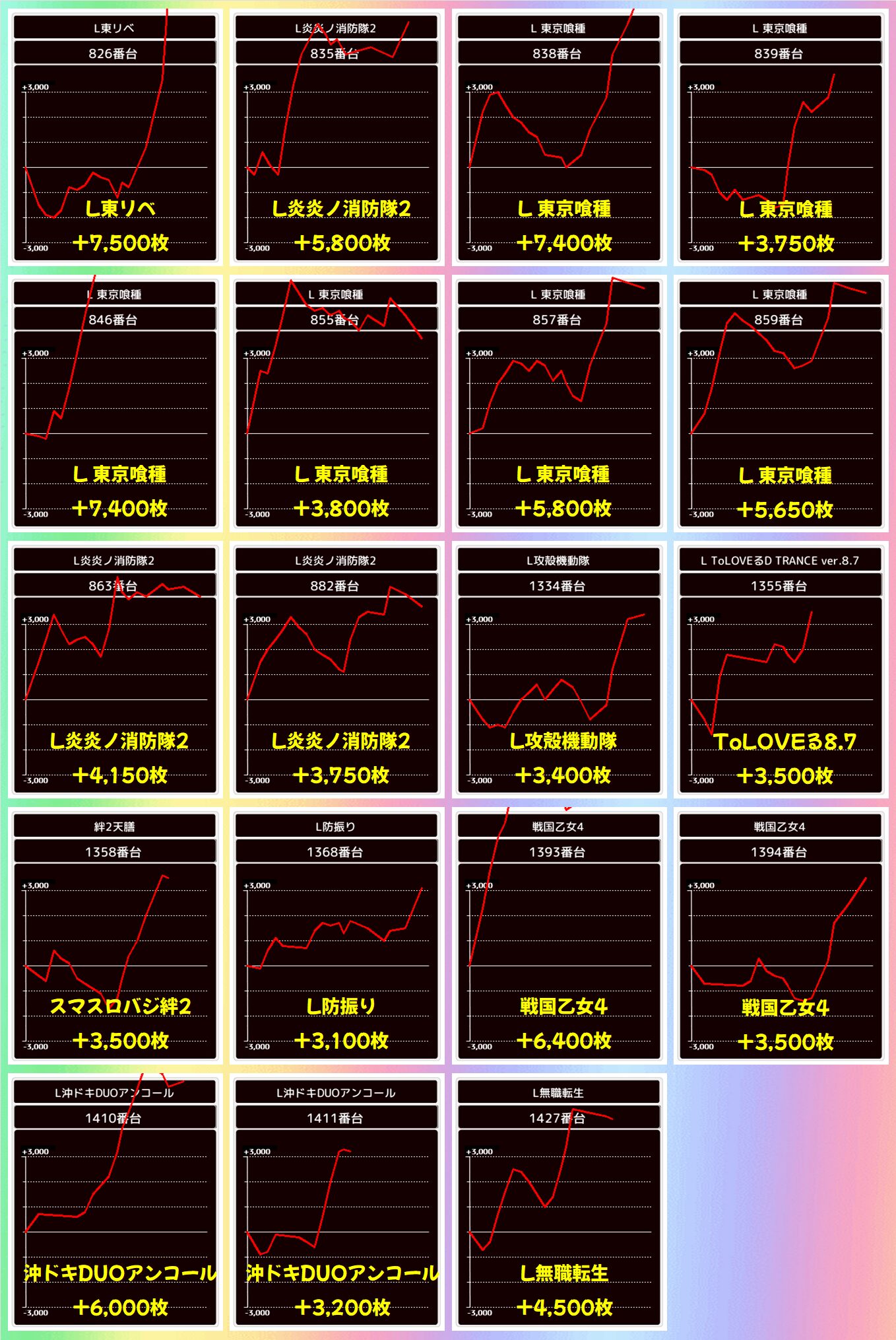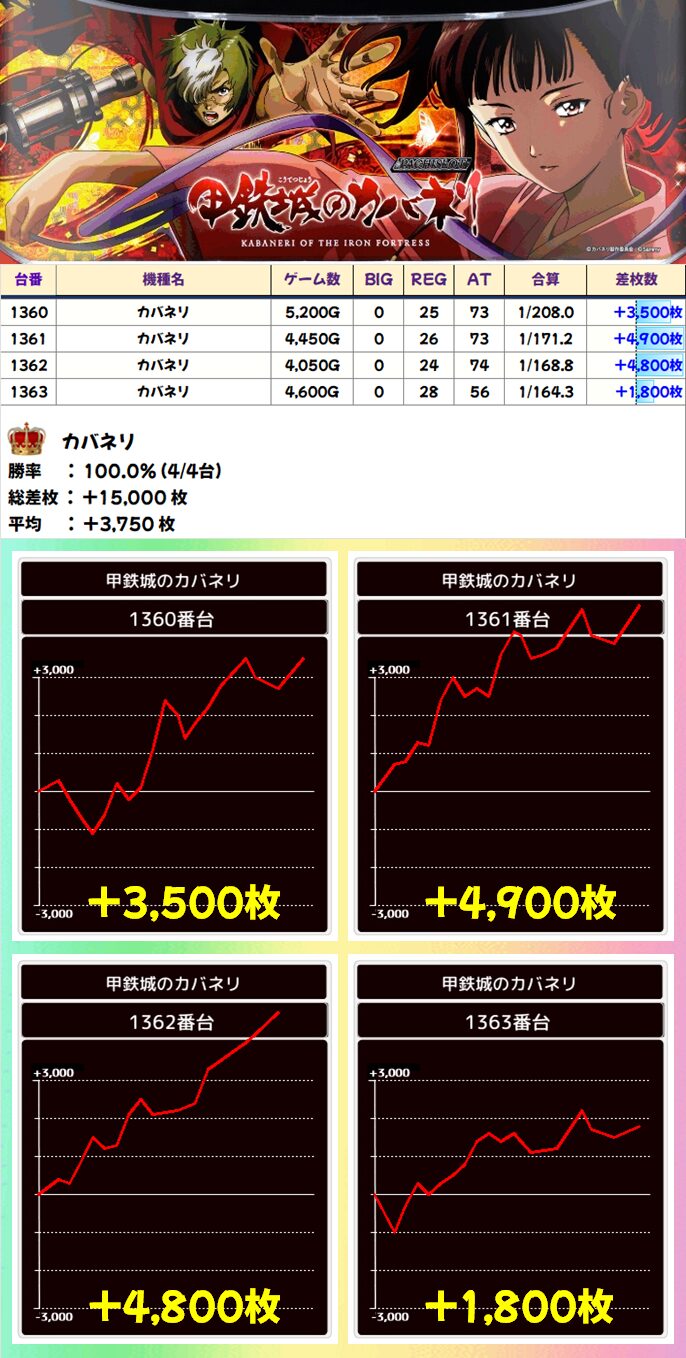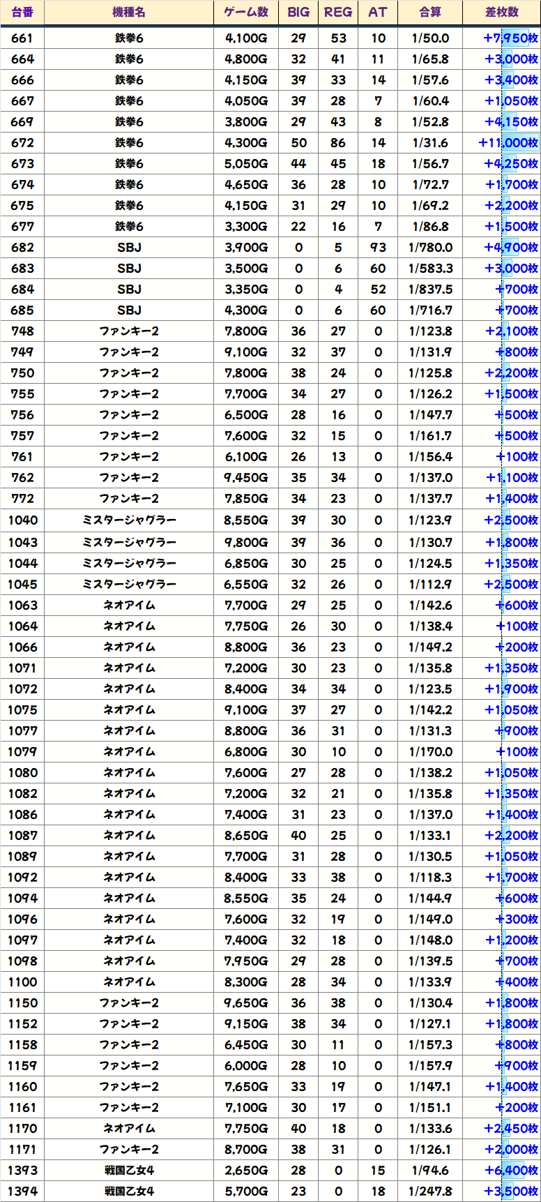 優秀台(+1000枚超)をピックアップしていきますので確認していきましょう!