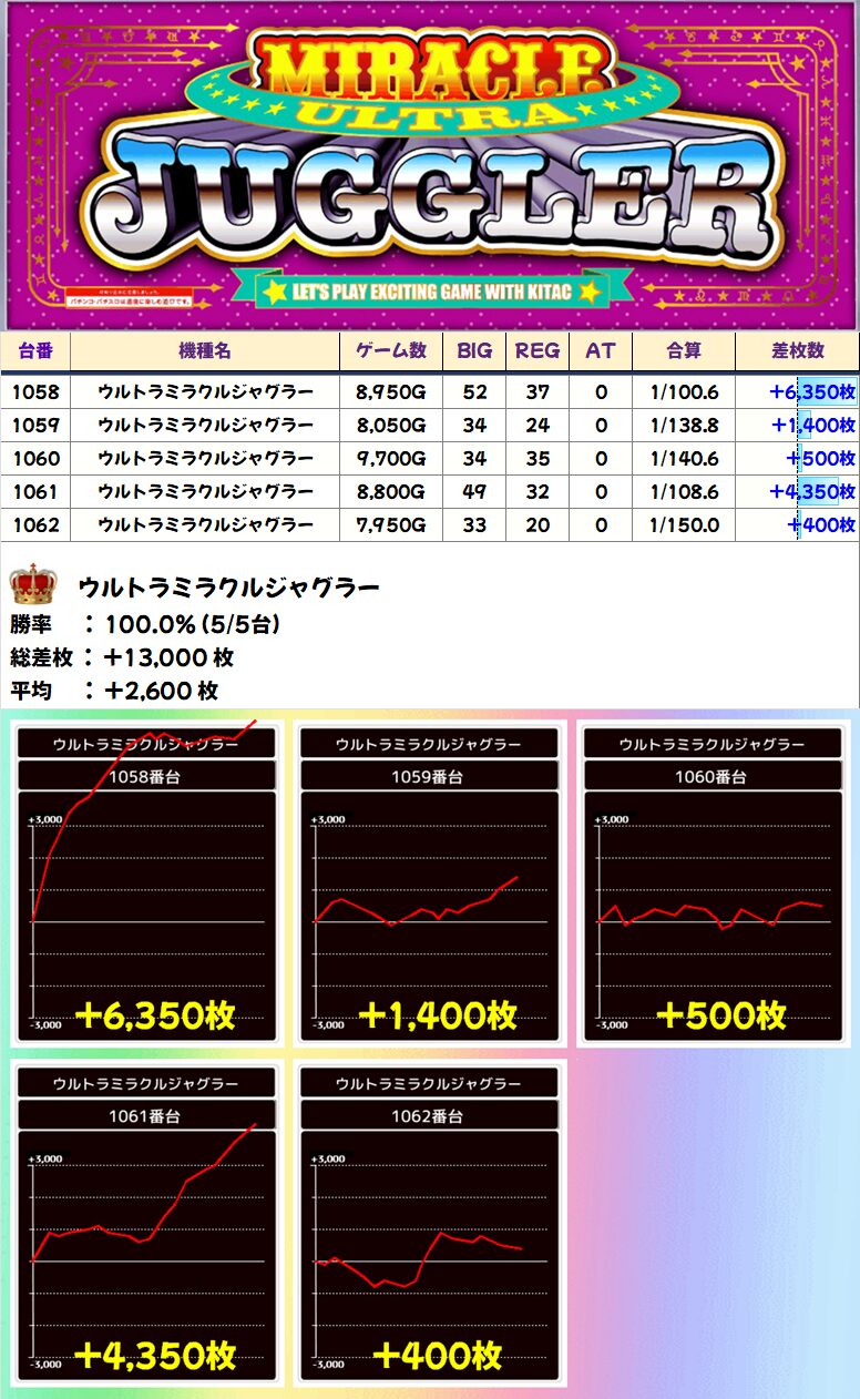 ウルトラミラクルジャグラー (5/5台+) ➡平均 +2,600枚