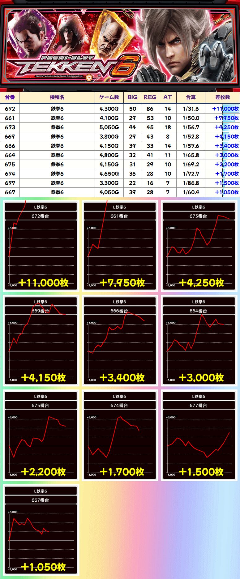 鉄拳6は高配分仕掛けとして優秀台多数!万枚超の台もアリ!
