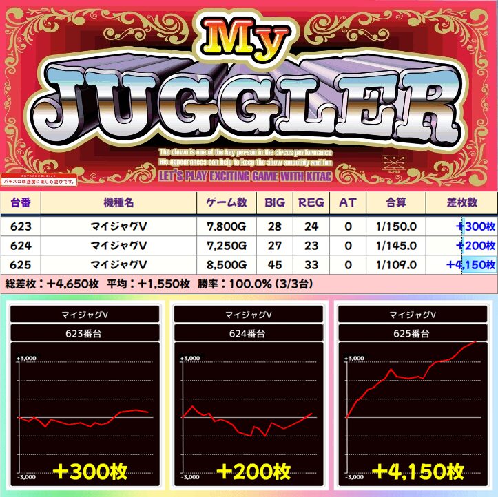 【3台並び】623-625番台 マイジャグラーV▶平均+1,550枚