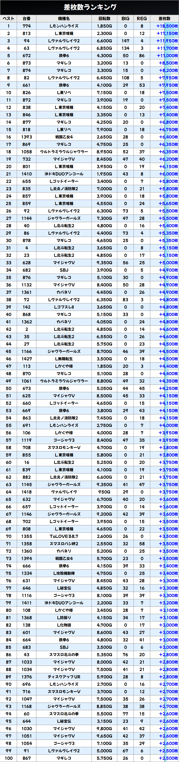 差枚数ランキング&島図をチェック!
