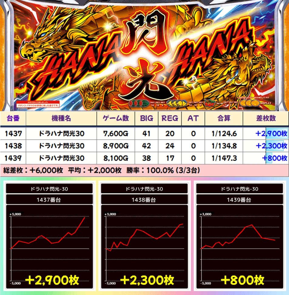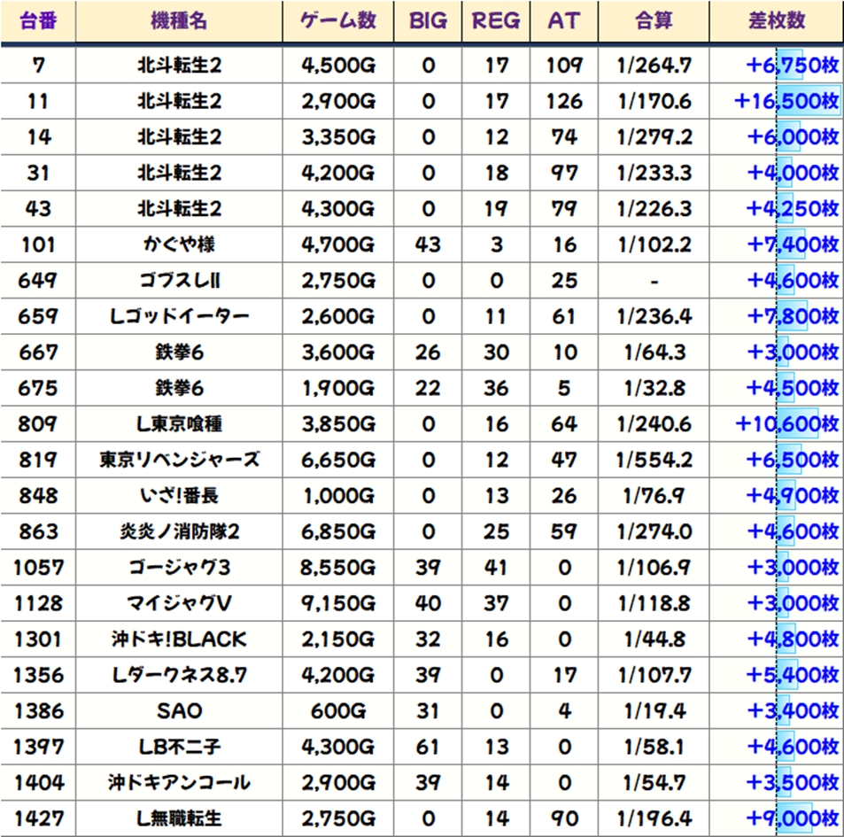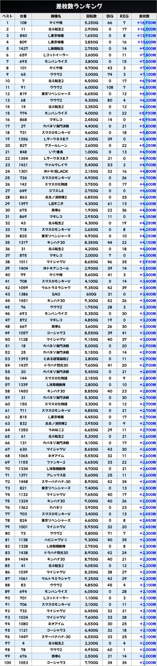 優秀台(+1000枚超)をピックアップしていきますので確認していきましょう!