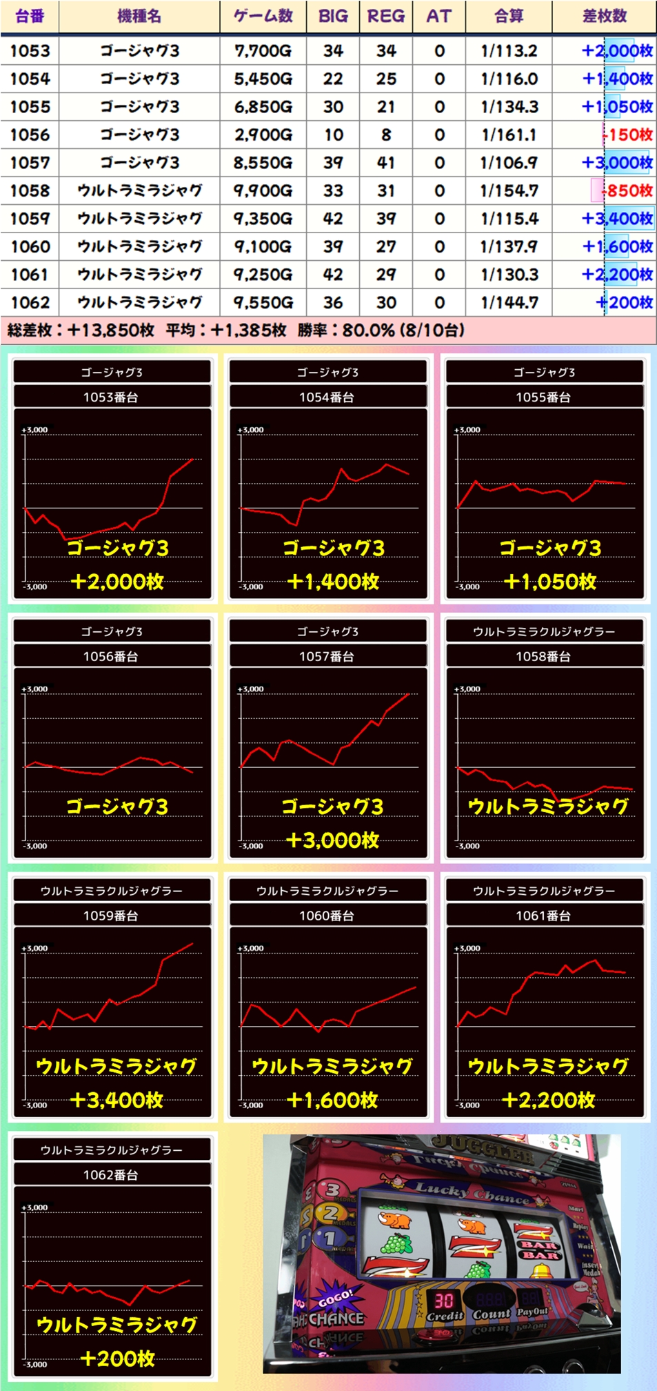 ウルトラミラジャグ(4/5台+)➡平均+1,310枚