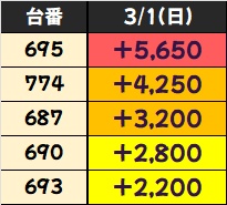 🔽3/1~の結果🔽