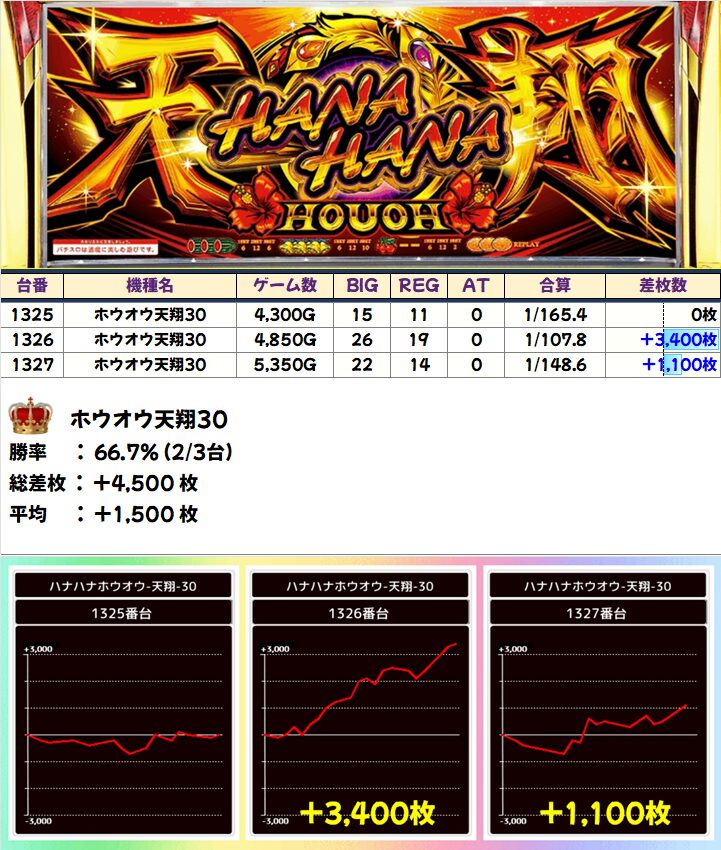 ホウオウ天翔30(2/3台+)➡平均+1,500枚