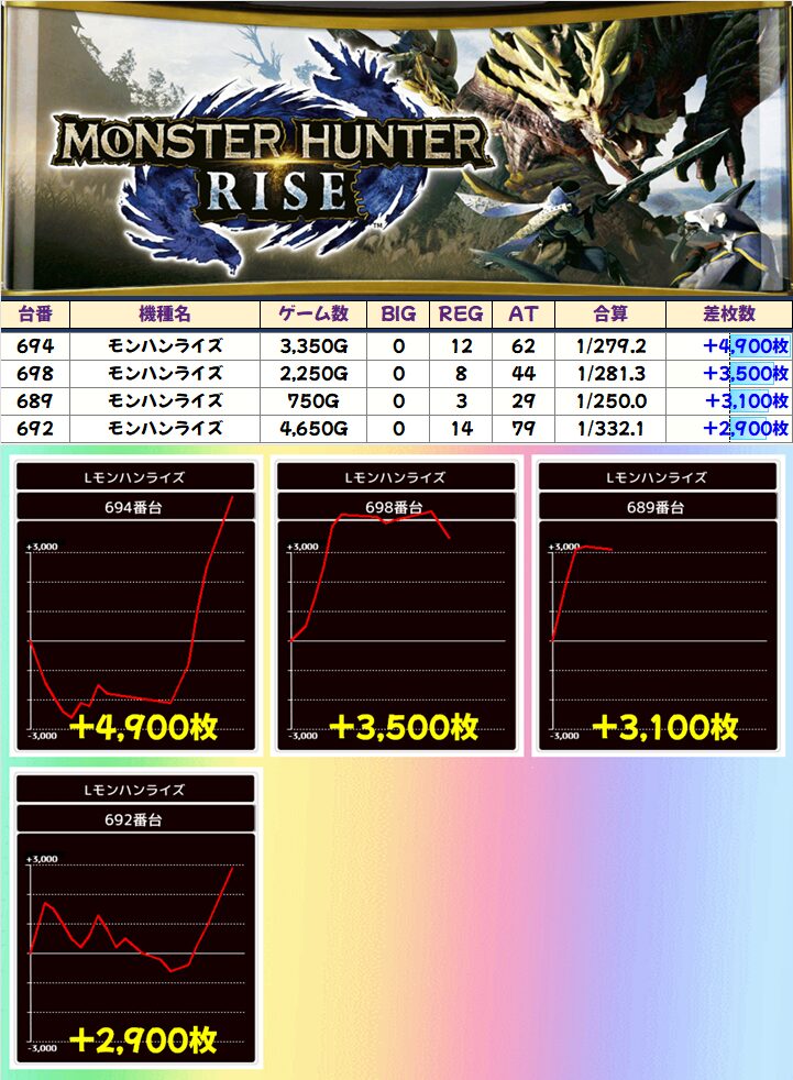 新ポスターの中で唯一仕掛けに絡まなかった「モンハンライズ」からも+3000枚以上×3台を確認!