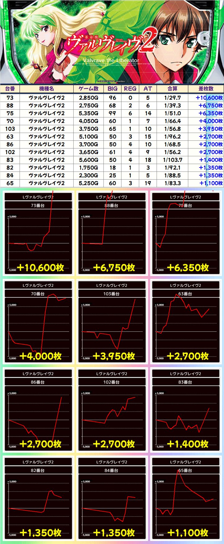 「ヴァルヴレイヴ2」は万枚を筆頭に約10台が+2000枚を突破と好調!