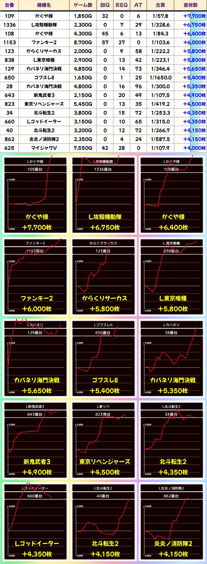 優秀台(+1000枚超)をピックアップしていきますので確認していきましょう!