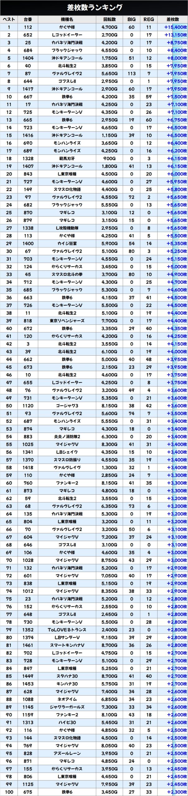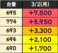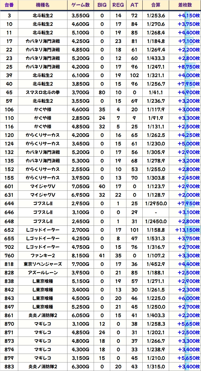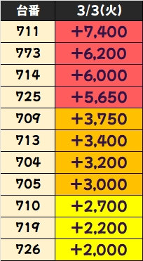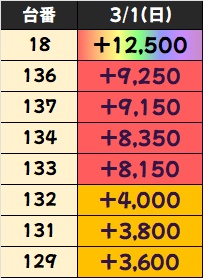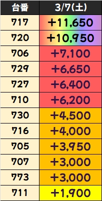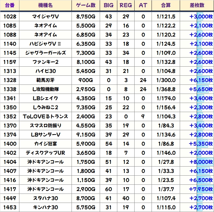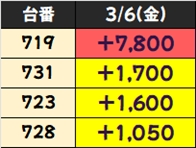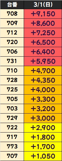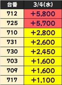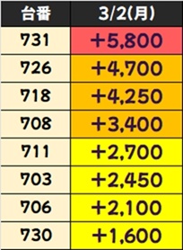 優秀台(+1000枚超)をピックアップしていきますので確認していきましょう!
