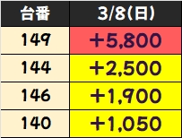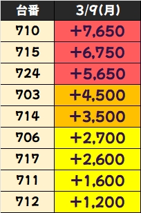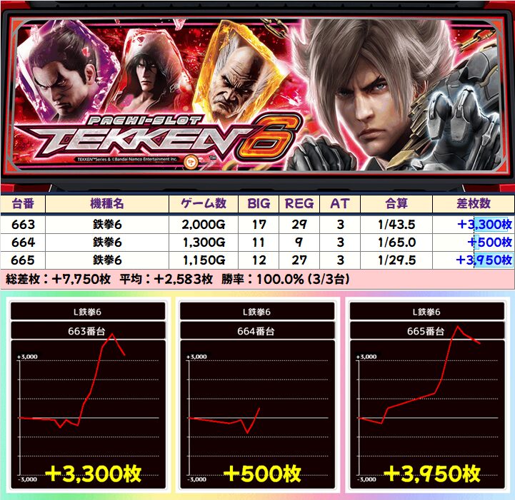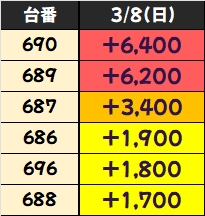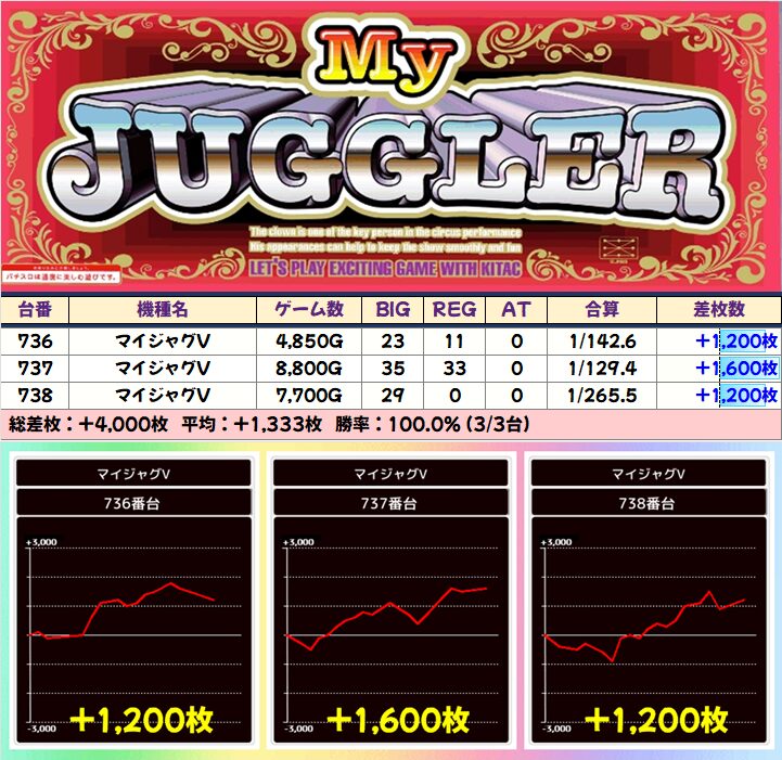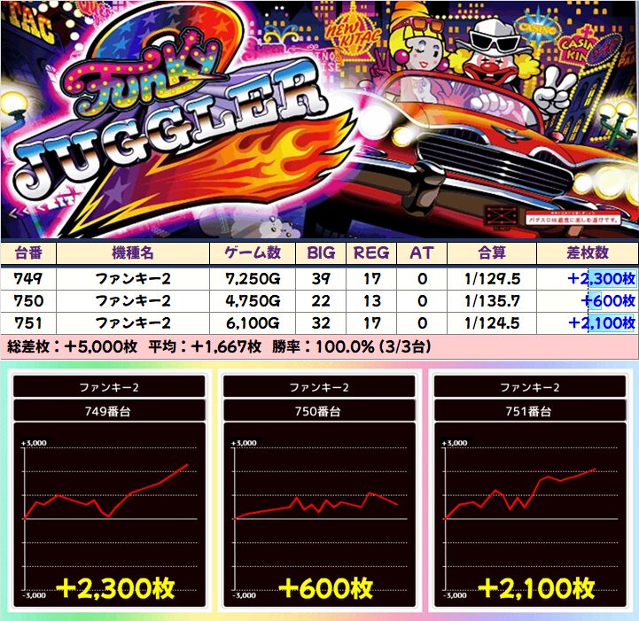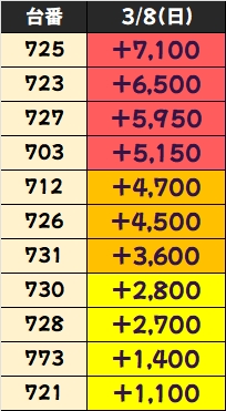 +3750枚を筆頭に4台中3台が+2000枚以上としっかり結果を残していました!