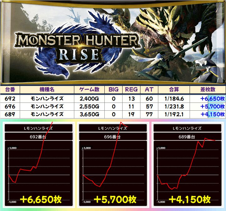 「モンハンライズ」は計3台が+4000枚以上と躍動!