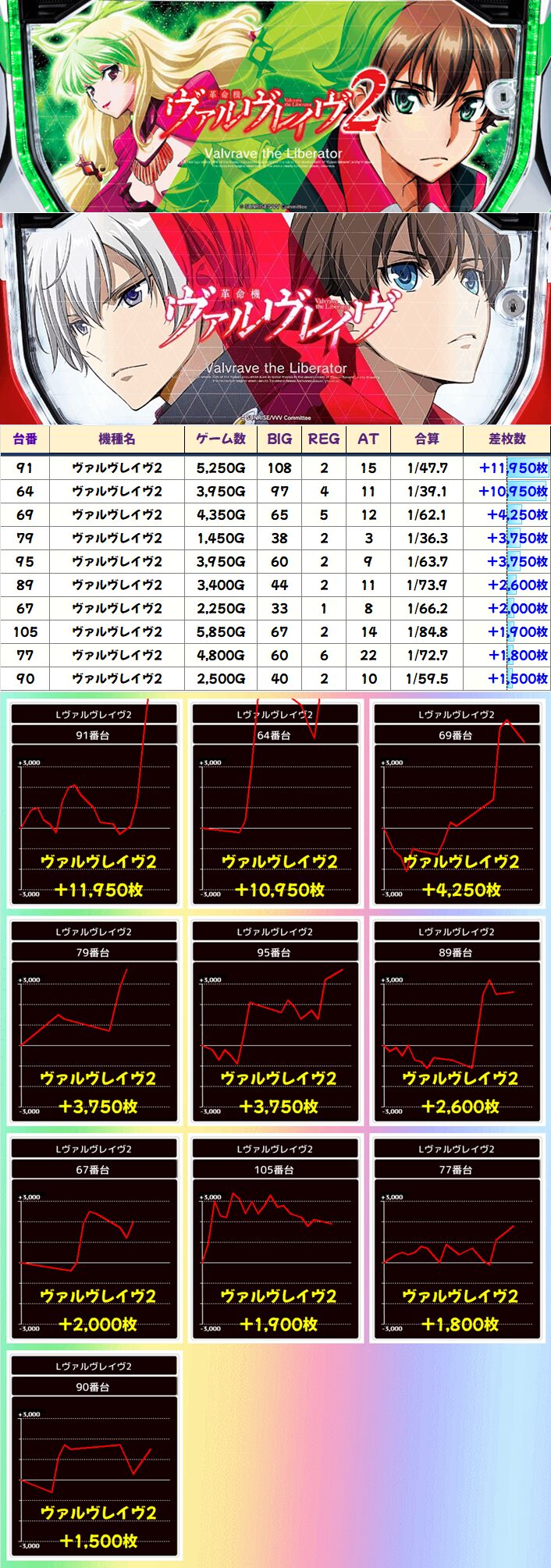 並び仕掛けもあった「ヴァルヴレイヴ2」から複数の万枚など多数の優秀台を確認!