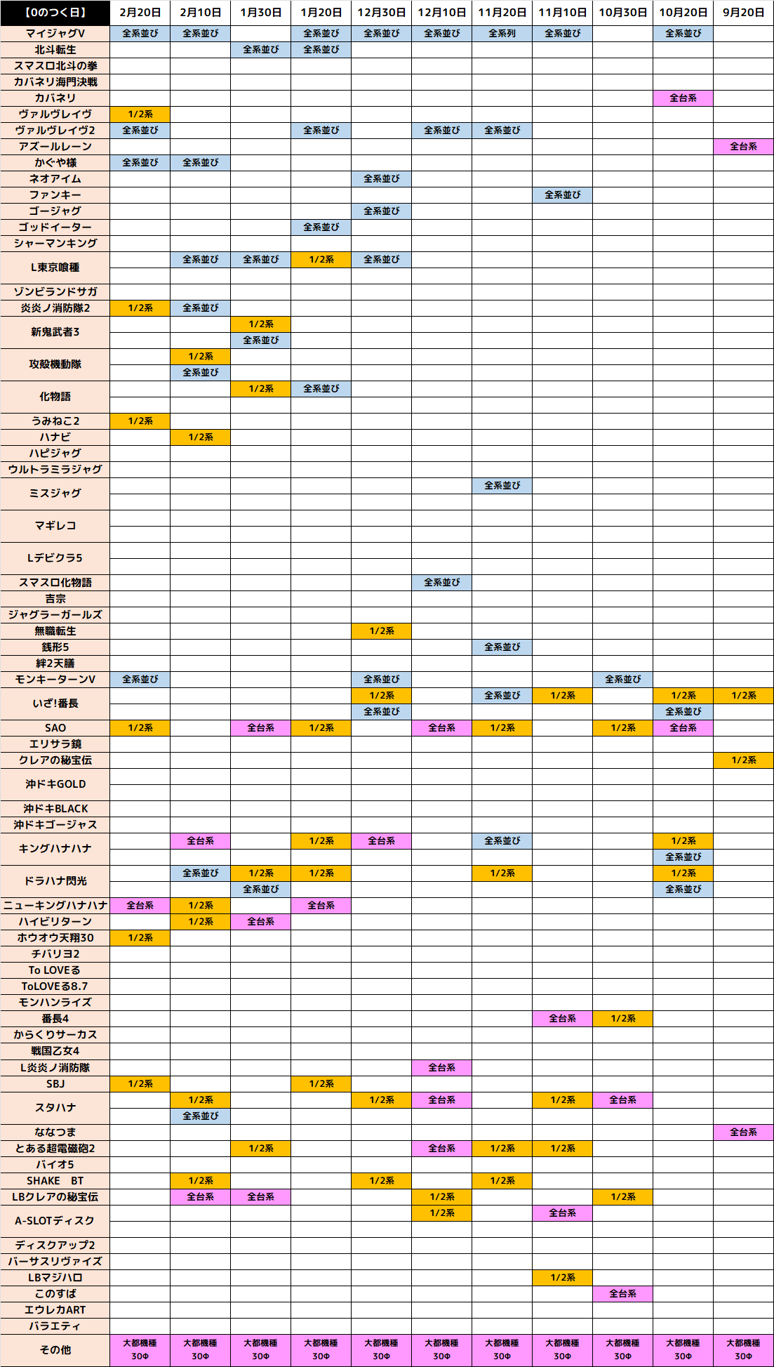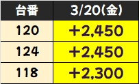 今回は、0のつく日となった3/20の結果をレポート。なお、0のつく日は、0の日機種である「大都機種・30Φ」がチャンスとなる一日となっております!