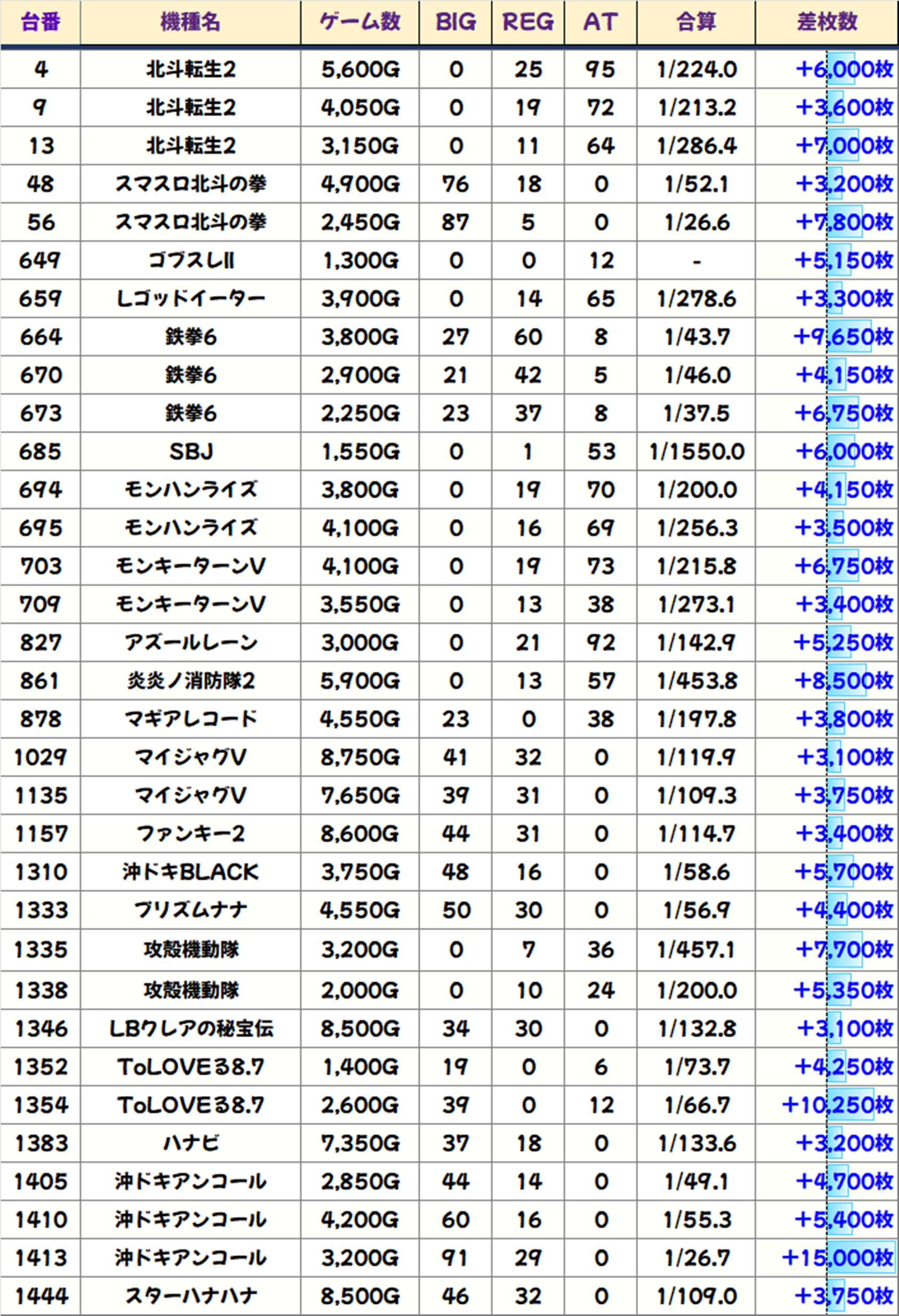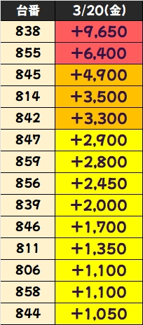 優秀台(+1000枚超)をピックアップしていきますので確認していきましょう!