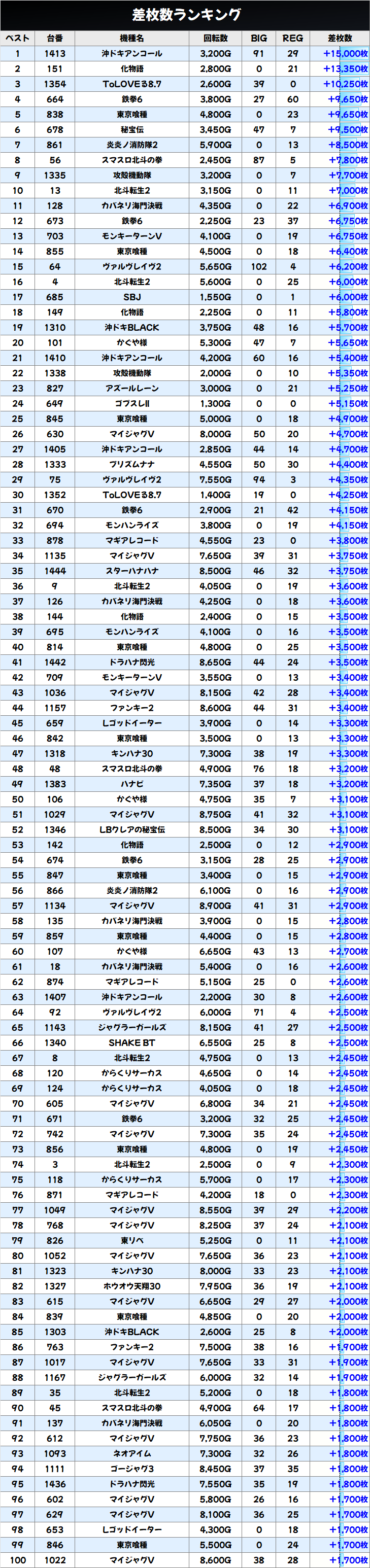 差枚数ランキング&島図をチェック!